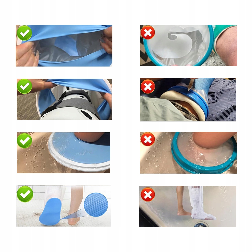 - Водонепроникність: дуже гнучкий отвір щільно прилягає до шкіри ноги, створюючи щільне ущільнення. Утримує вологу під час душу та ванни, запобігаючи контакту ран, гіпсових пов’язок і пов’язок з водою, таким чином зменшуючи ризик пов’язаних з вологою інфекцій.