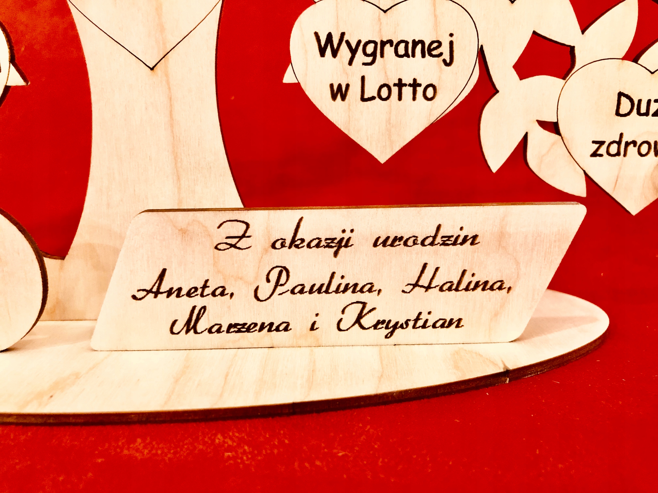 Подарунок на день народження у вигляді вигравіруваного дерева з побажаннями від нашої оригінальної студії гравіювання GRAWERNIADDZ.