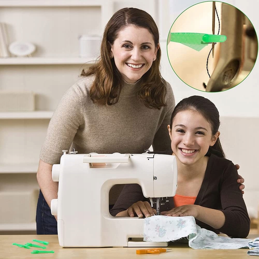 За допомогою кількох простих кроків ви можете протягніть нитку в отвір швейної машини або голки, особливо підходить людям похилого віку з поганим зором. Утримує голку на місці під час введення та запобігає її падінню на підлогу під час заміни голки.