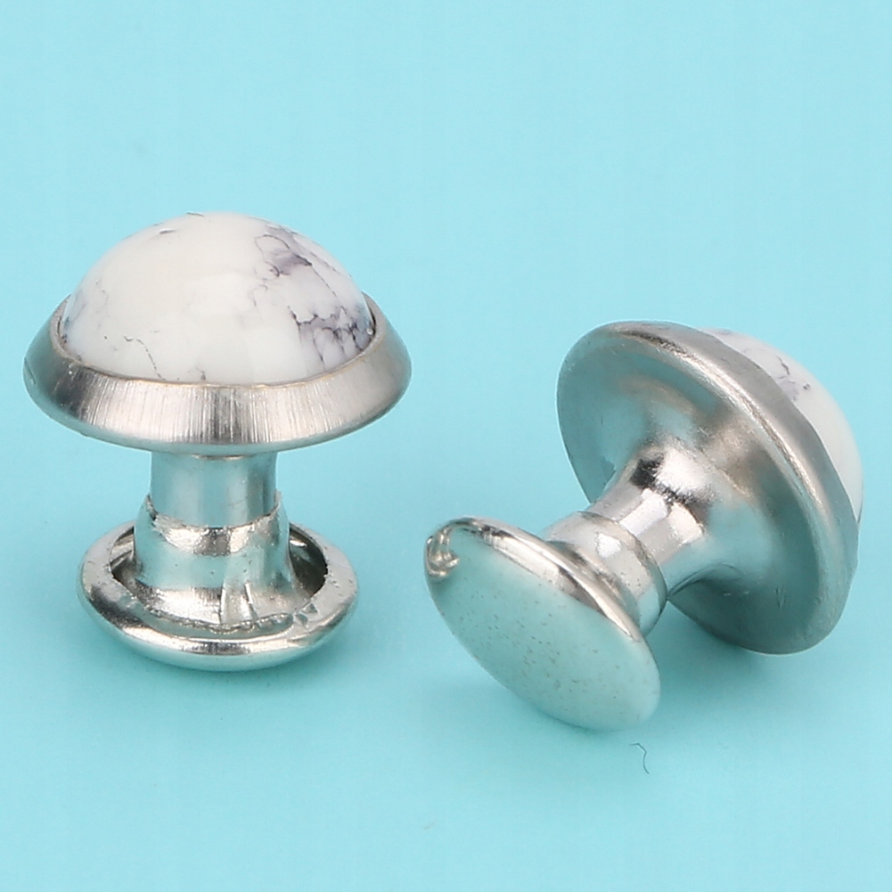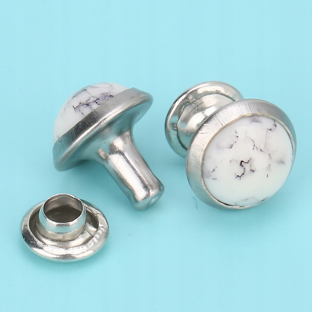 Встановлення: спочатку проробіть невеликий отвір у шкірі, потім натисніть на заклепку та забийте її грибом цвях.