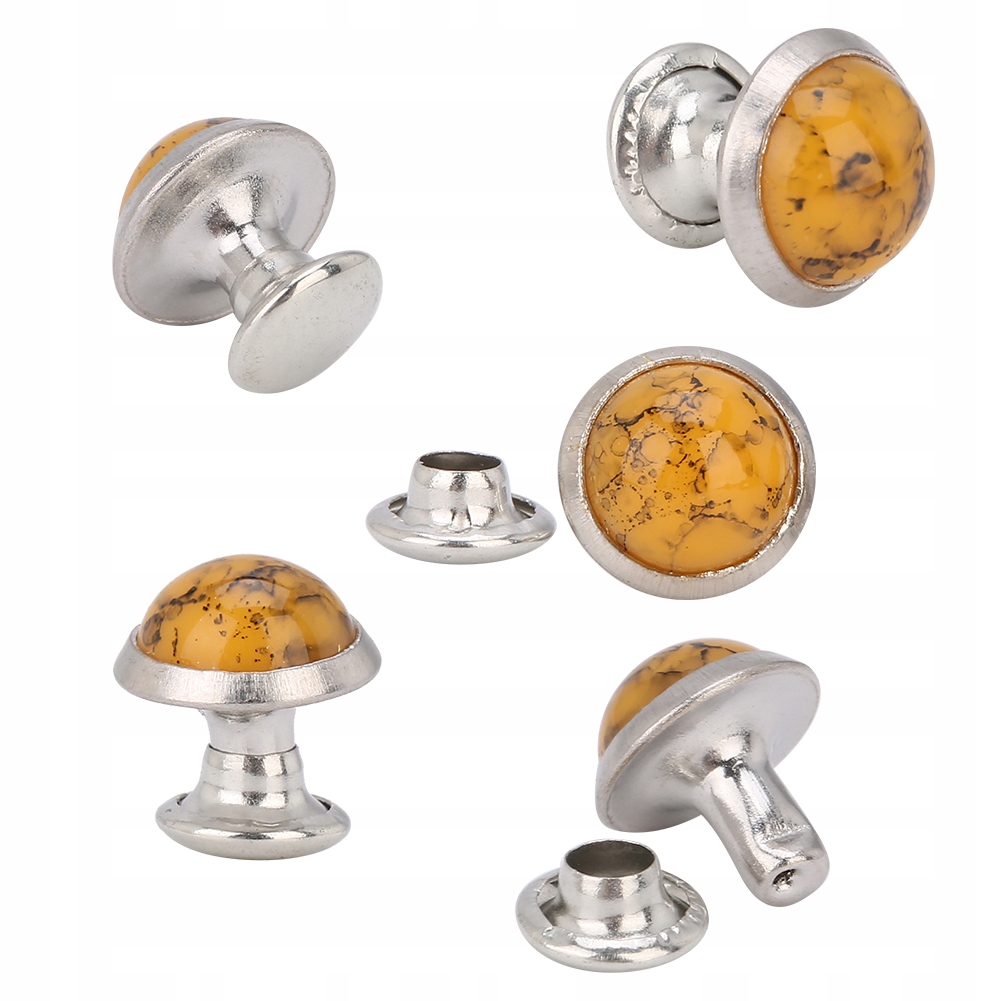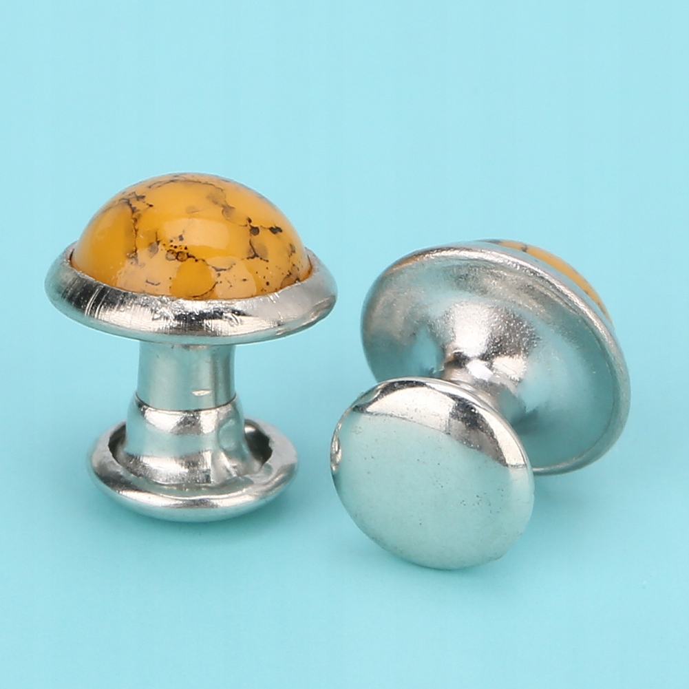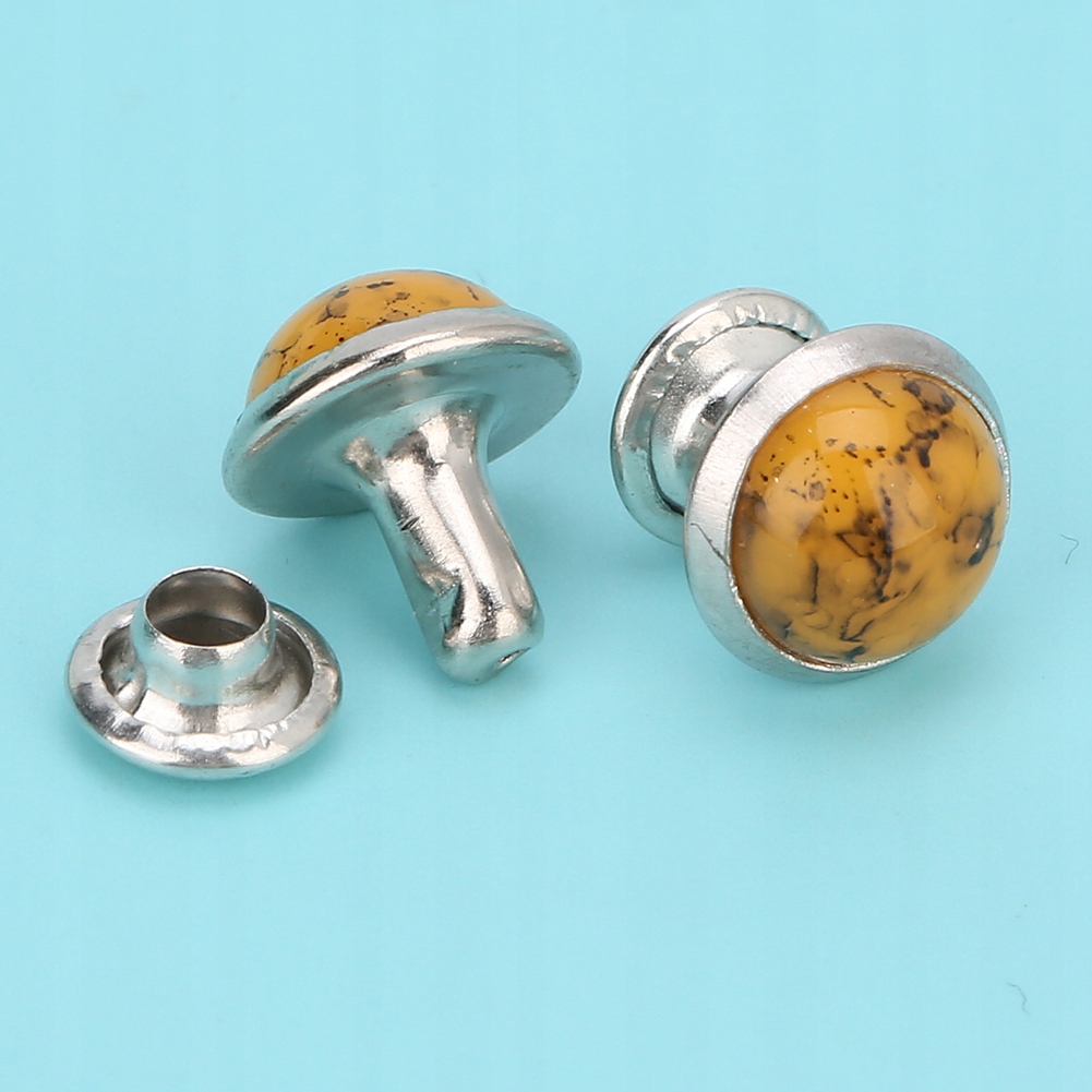 Встановлення: спочатку проробіть невеликий отвір у шкірі, потім натисніть на заклепку та забийте її грибом цвях.