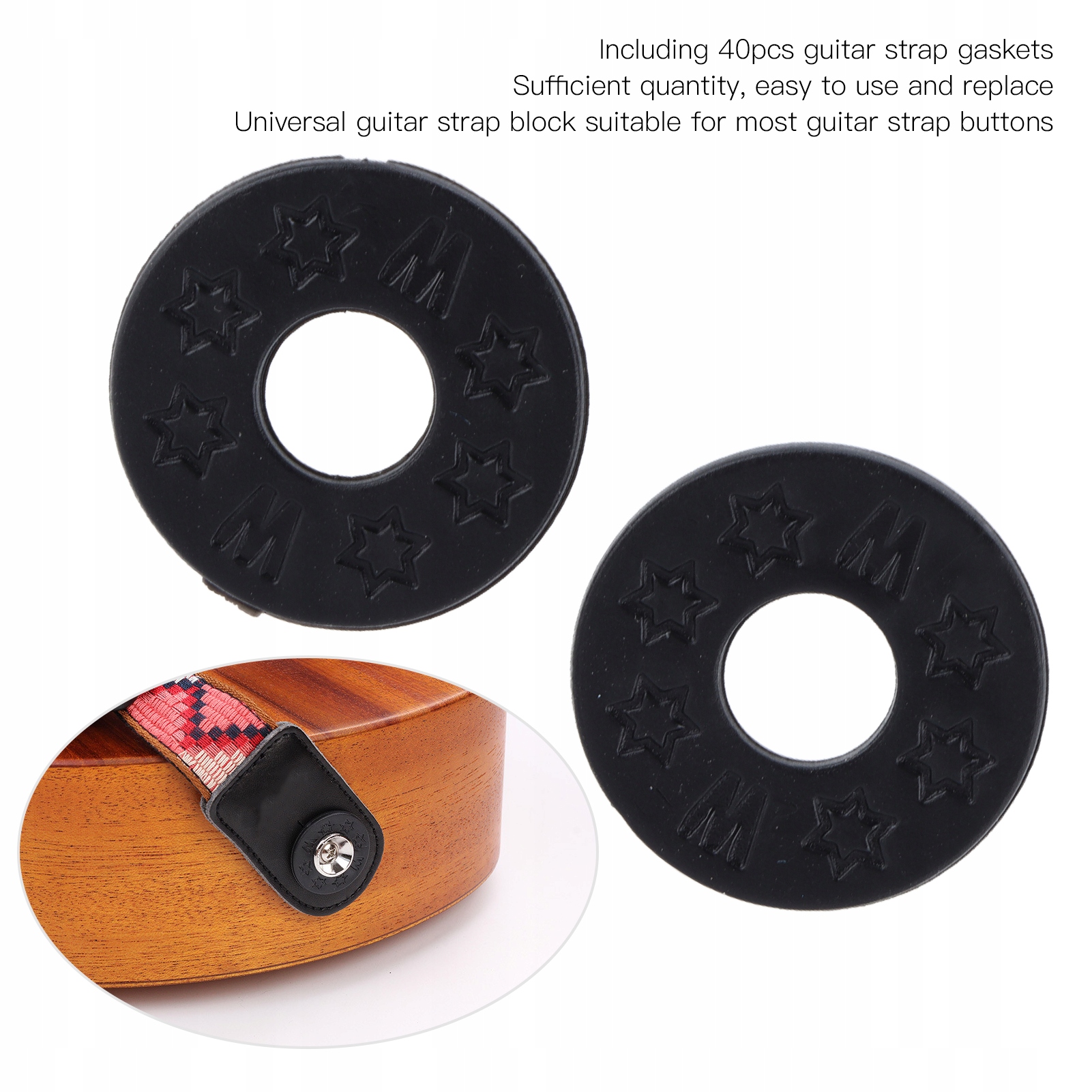 1. Досить: включаючи 40 шматочків прокладок гітарного ременя в достатній кількості, можна використовувати та замінити в будь -який час. Проста установка: Ці ущільнювачі можна встановити без буріння та викручування, просто пройдіть кнопку ременя і заблокуйте її. Міцний матеріал: виготовлений з відмінного матеріалу PE, м'якого та корозії та має хорошу стійкість до низьких температур. Універсальні ущільнювачі: Універсальні ремінці підходять для більшості гітарних та басових кнопок, які дуже практичні. Хороший захист: Ці гітарні ремені мають ефект проти -свердловини і можуть захистити ремінь від споживання кінцевими кнопками.