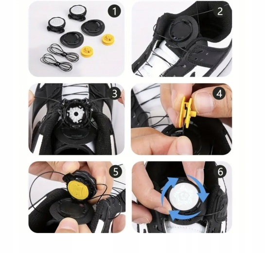 - Автоматичний обертовий механізм: Завдяки вбудованому обертальному механізму шнурки автоматично зараховуються після повороту ручки, що забезпечує ідеальне пристосування та комфорт носіння. Це швидко і комфортно, без необхідності зв’язувати традиційні шнурки.