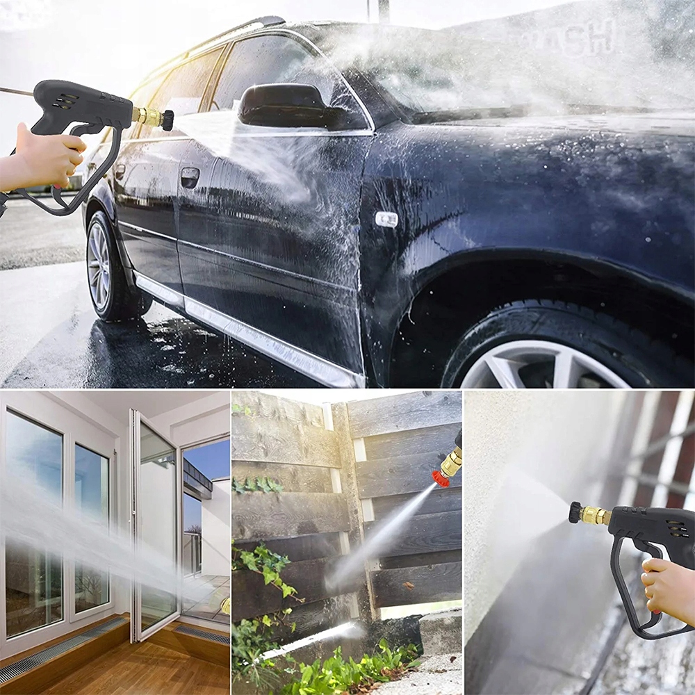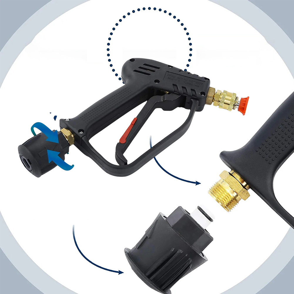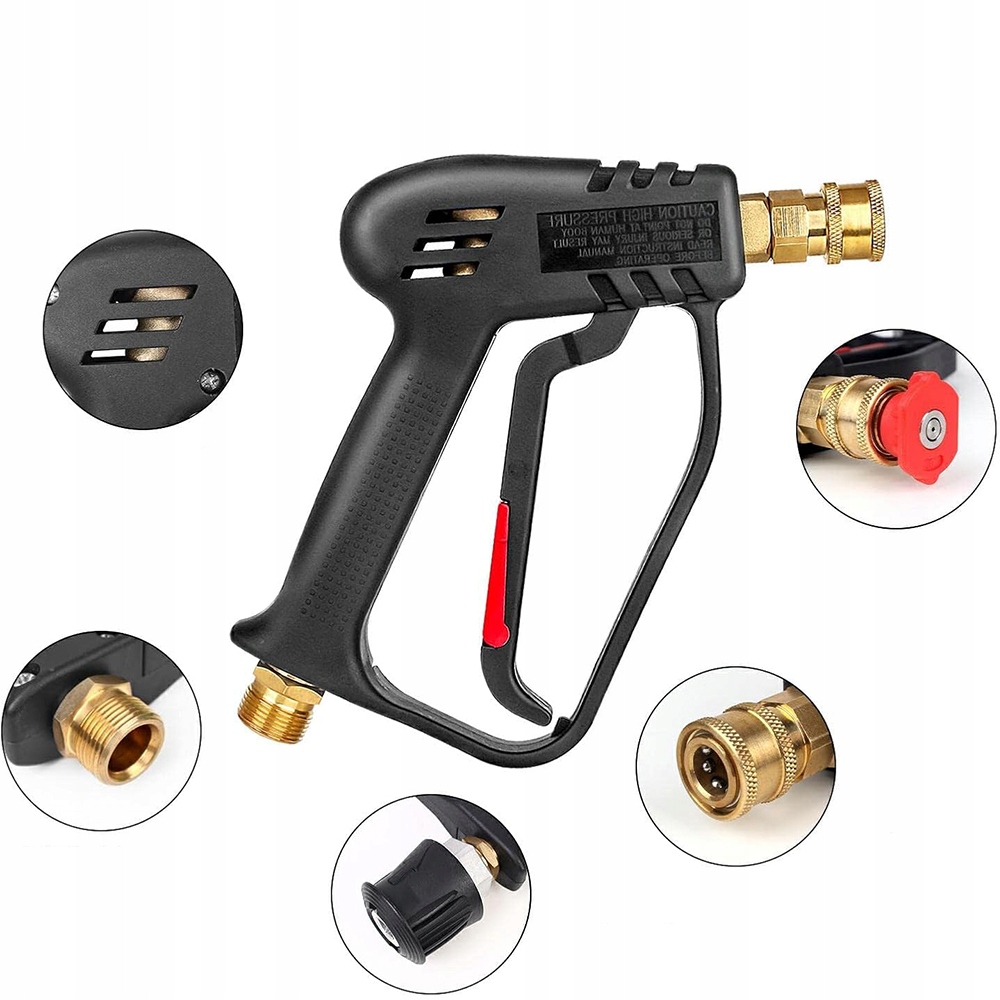 - Цей пістолет для очищення високого тиску оснащений швидким адаптером з'єднання та з'єднувачем m22 (14 мм).