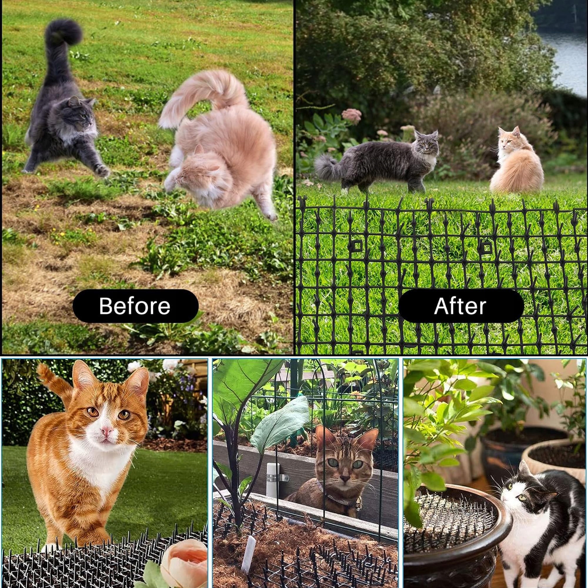 Сад відлякувач котів гнучкий і його можна розрізати за розміром і зшити разом, щоб розширити захищену зону. Ви можете розмістити його в маленьких або великих просторах або обернути навколо стовпів або дерев, щоб тварини не могли лазити. Килимок для котячих кал із шипами — це жорсткий рулон, який можна швидко згорнути та прибрати, коли він не використовується, для вашої зручності.