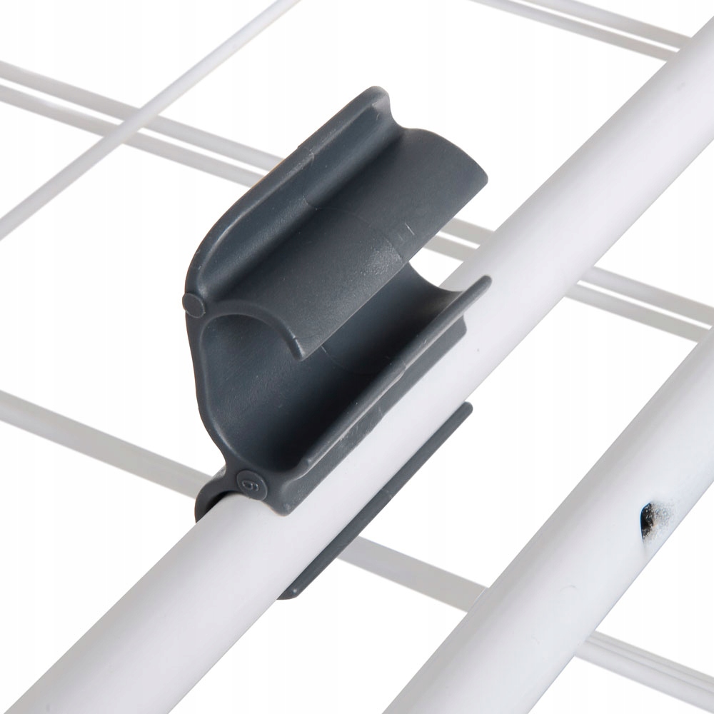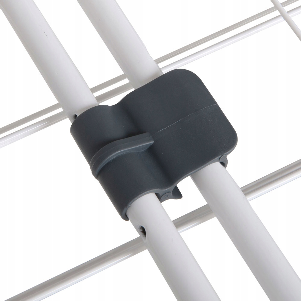 Виготовлений зі сталі, він надзвичайно стабільний і стійкий до УФ-променів і зовнішніх факторів, тому його можна успішно використовувати на вулиці . Сталева конструкція оснащена протиковзкими накладками. Спрощений механізм розкладання ніжок і самоскладний замок забезпечують високий комфорт використання і виняткову легкість розкладання. Замок на автоматичному відкритті стулок полегшує перенесення та зберігання сушильної машини в складеному вигляді.