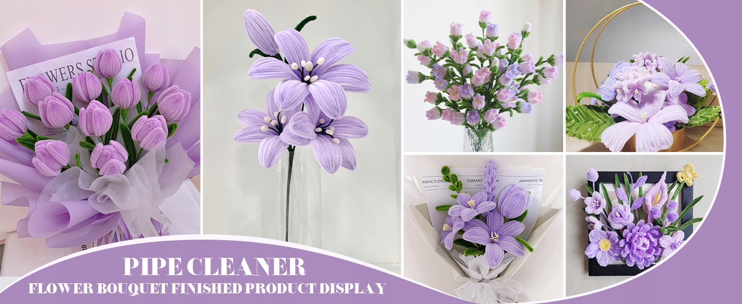 - Наш набори для ремесла Art Bouquet Diy містить 310 шматочків очищувальних агентів (100 світлових фіолетових шматочків, 100 фіолетових шматочків, 100 зелених шматочків і 10 жовтих шматочків), 20 квіткових стебла, 70 квіткових ядер, 5 гнучких клею, 2 ролики 1 упаковки з мережі, можуть задовольнити ваші потреби в створенні.