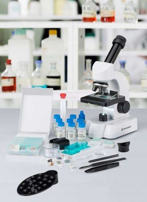 Мікроскоп Bresser Junior дозволяє проводити спостереження в прохідному світлі. 20 штук готових препаратів, що входять в набір, дозволяють відразу приступити до вивчення мікросвіту. Він також оснащений багатим набором необхідних аксесуарів для приготування власних препаратів.