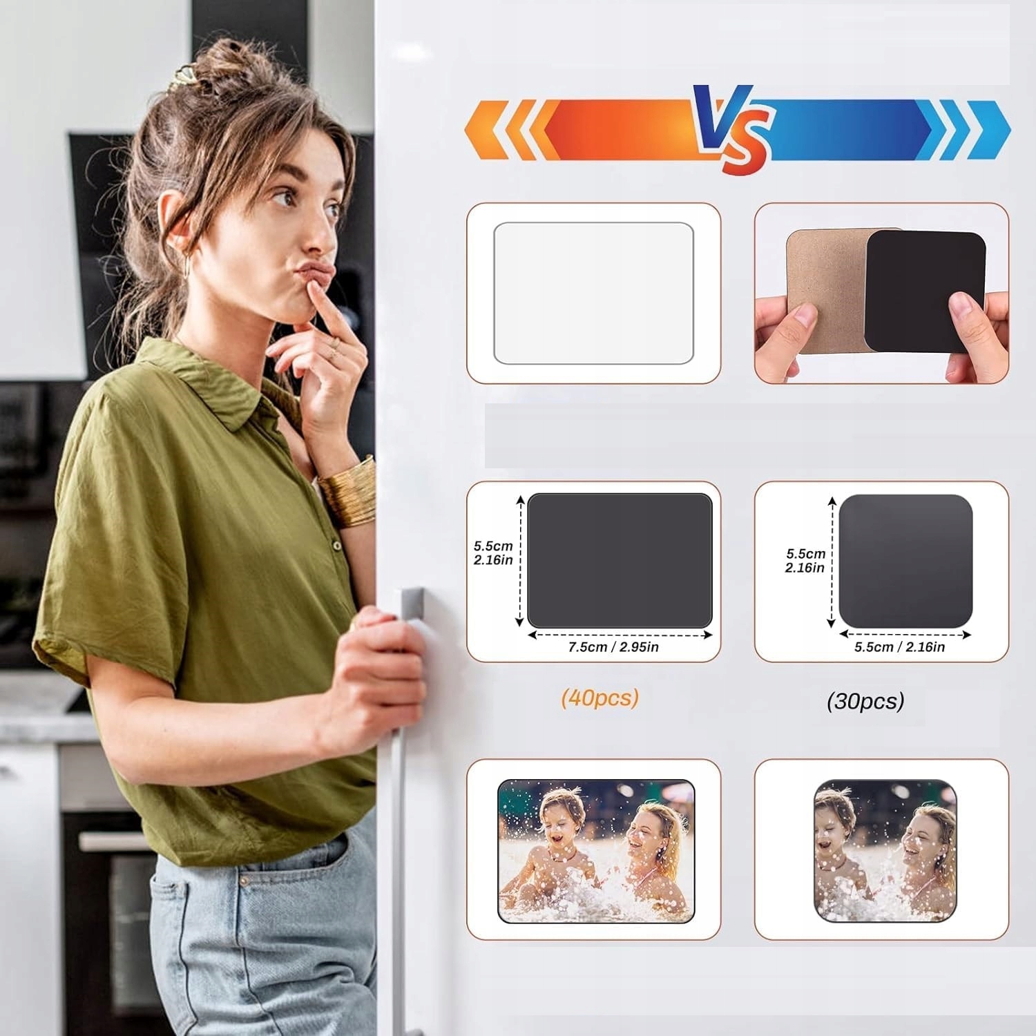 Створюйте унікальні та персоналізовані магніти на холодильник за допомогою наших 40 пустих сублімаційних магнітних наклейок! Ідеально підходить для творчих ігор, організації, маркування та персоналізація простору на вашій кухні та вдома.
