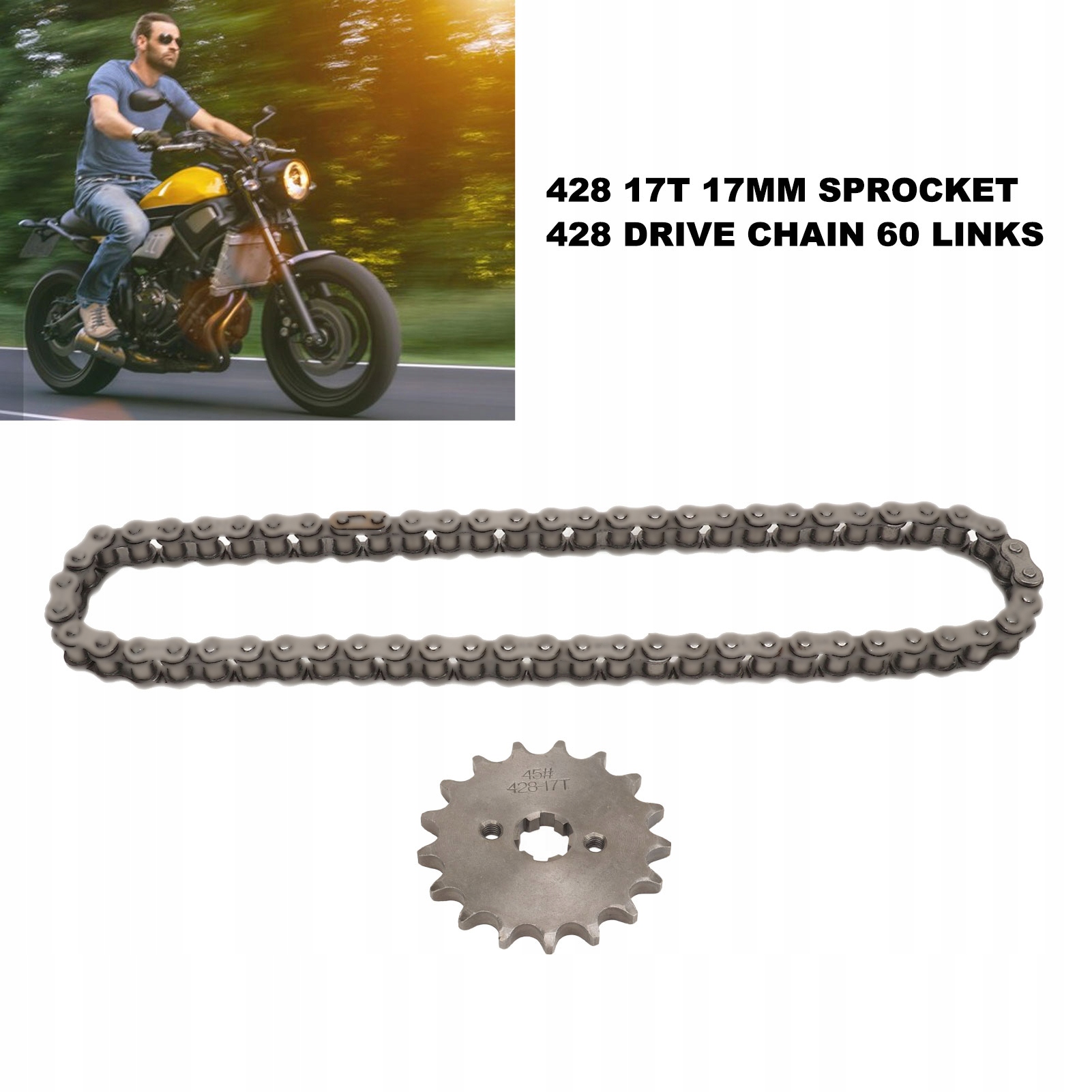 . 428 17T 17 мм зірочка 428 приводний ланцюг 60 ланок комплект для HS