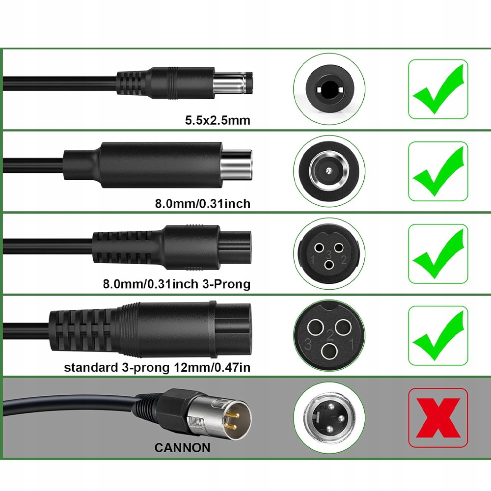 42V 2A ŁADOWARKA ZASILACZ Z 4 ZŁĄCZAMI DO SKUTER HULAJNOGI ELEKTRYCZNEJ