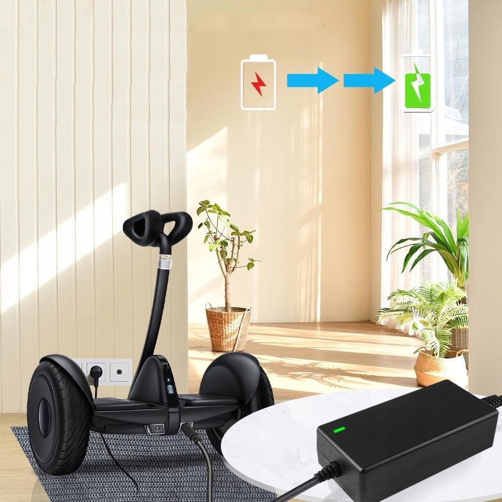 Зарядний пристрій для електросамоката виготовлено з високоякісних, екологічно чистих і вогнестійких матеріалів. Зарядний пристрій для скутера легкий, маленький, стабільний, ефективний, безпечний тощо. Зарядний пристрій для електричного скутера забезпечує оптимальну роботу та безпеку використання.