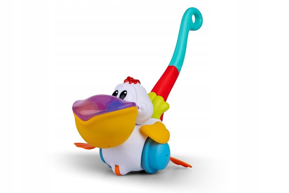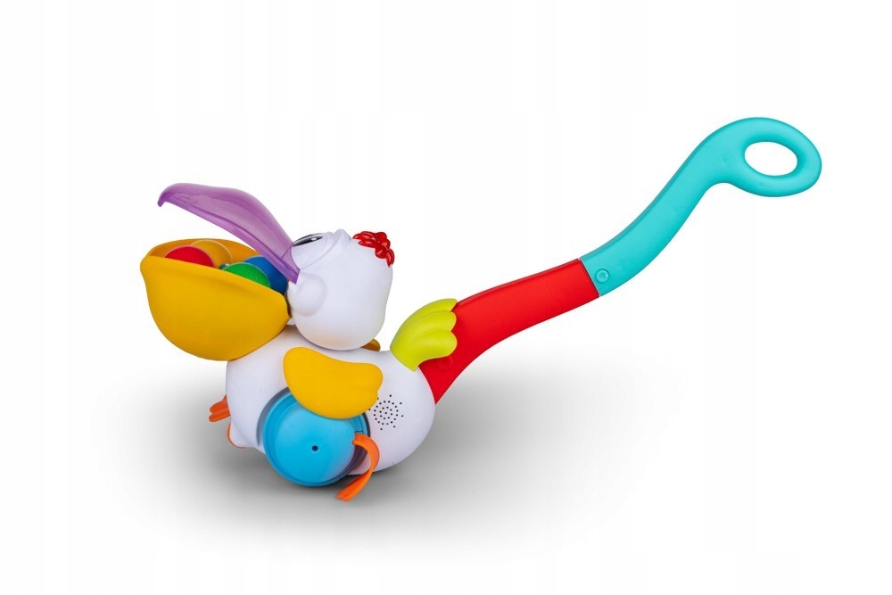 М'яч Пелікан - нерозлучний супутник дитячих прогулянок! Весела пташка ховає в дзьобі різнокольорові кульки, а коли водити рукою, вона їх викидає. Завдання малюка - зібрати їх усіх, кинути назад у дзьоб пташки і почати грати знову! Все в ритмі бадьорої пісеньки польською мовою та веселих звуків.