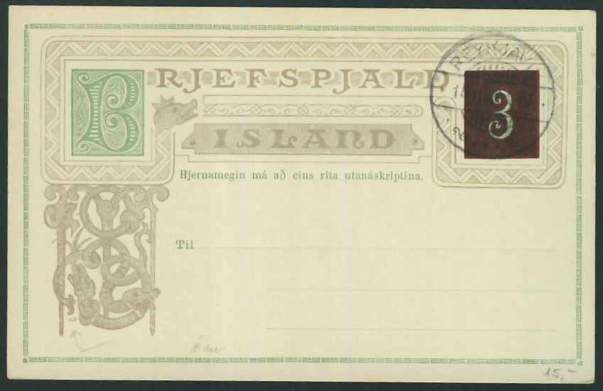 45 - ОСТРІВ Ісландія Cp Reykjavik 1917 Rjefspjald