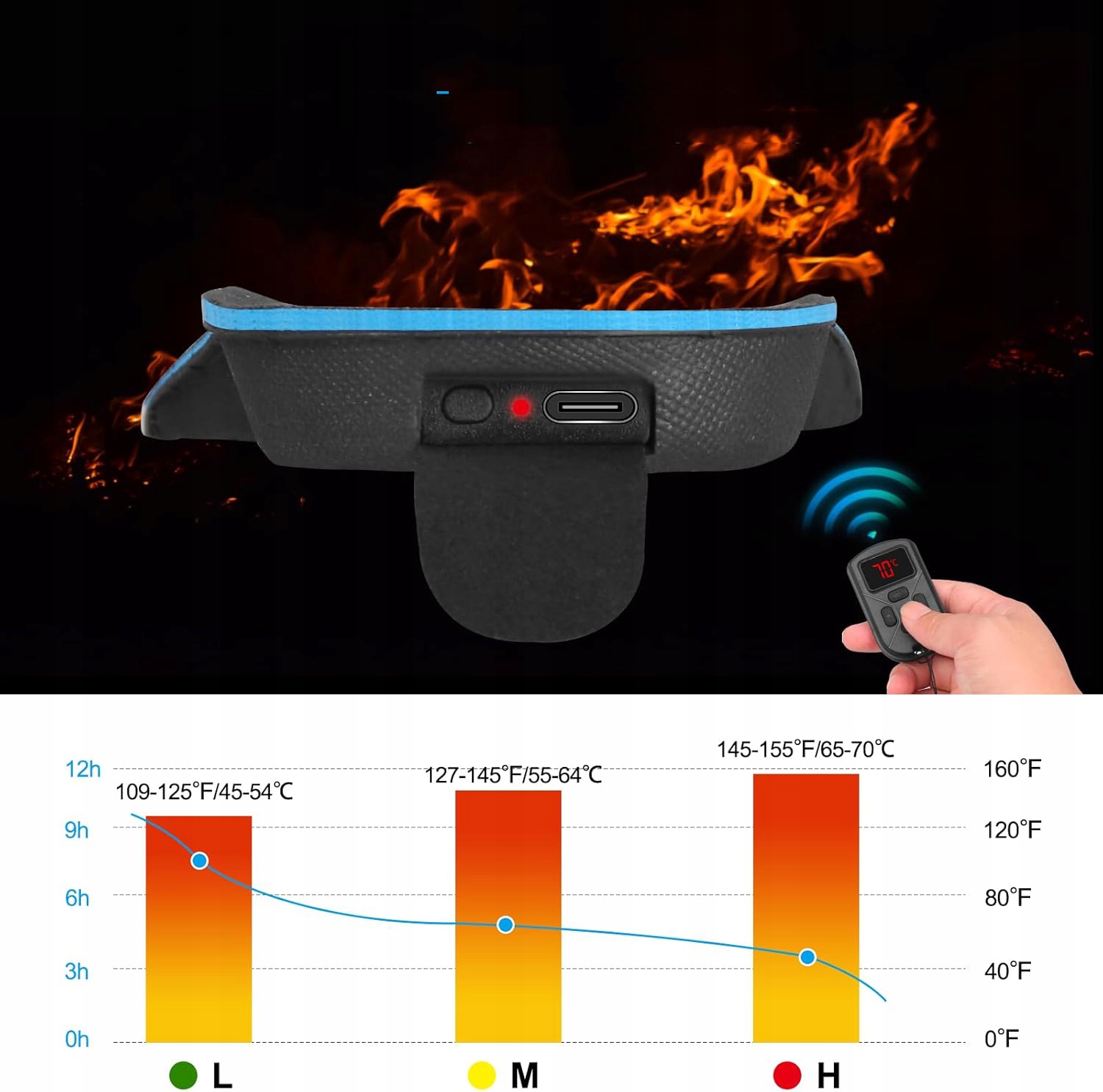 🌸🌸ПУЛЬТ ДИСТАНЦІЙНОГО КЕРУВАННЯ ТА ІНДИКАЦІЯ ТЕМПЕРАТУРИ:Стандартний пульт дистанційного керування дозволяє зручно вмикати та вимикати прилад та регулювати температуру, підтримує три режими температури, час роботи від 3,5 до 7,4 годин залежно від режиму нагріву, режим можна налаштувати на свій розсуд. потреби.