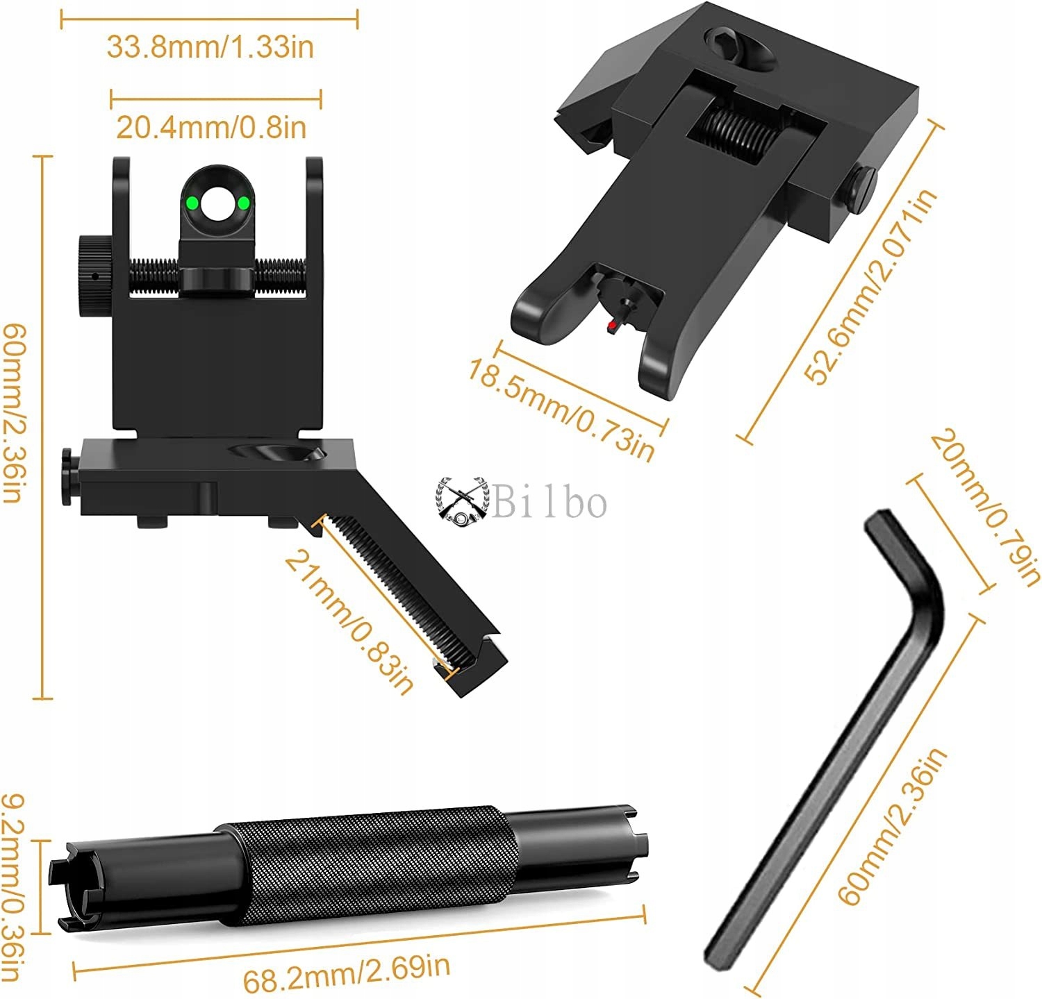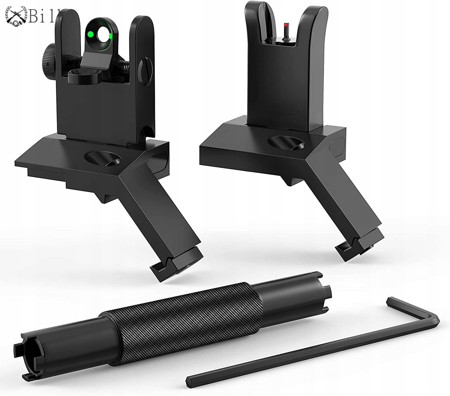 【Матеріал преміум-класу】 Відкидні мушка та цілик виготовлені із загартованого авіаційного алюмінієвого сплаву, дуже міцного та довговічного. Низькопрофільні прицільні пристосування під кутом 45 градусів спрощують перехід від оптичних до прицільних прицілів.