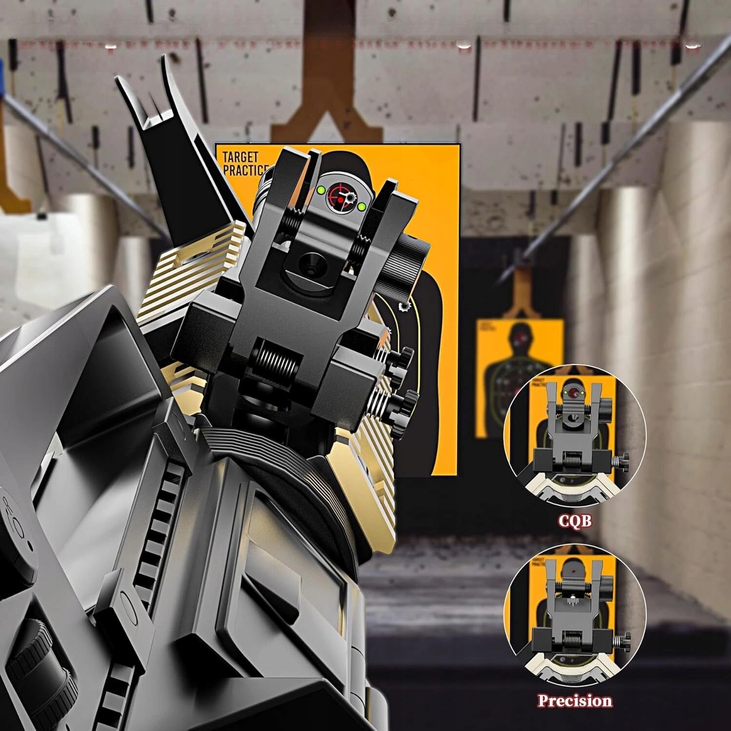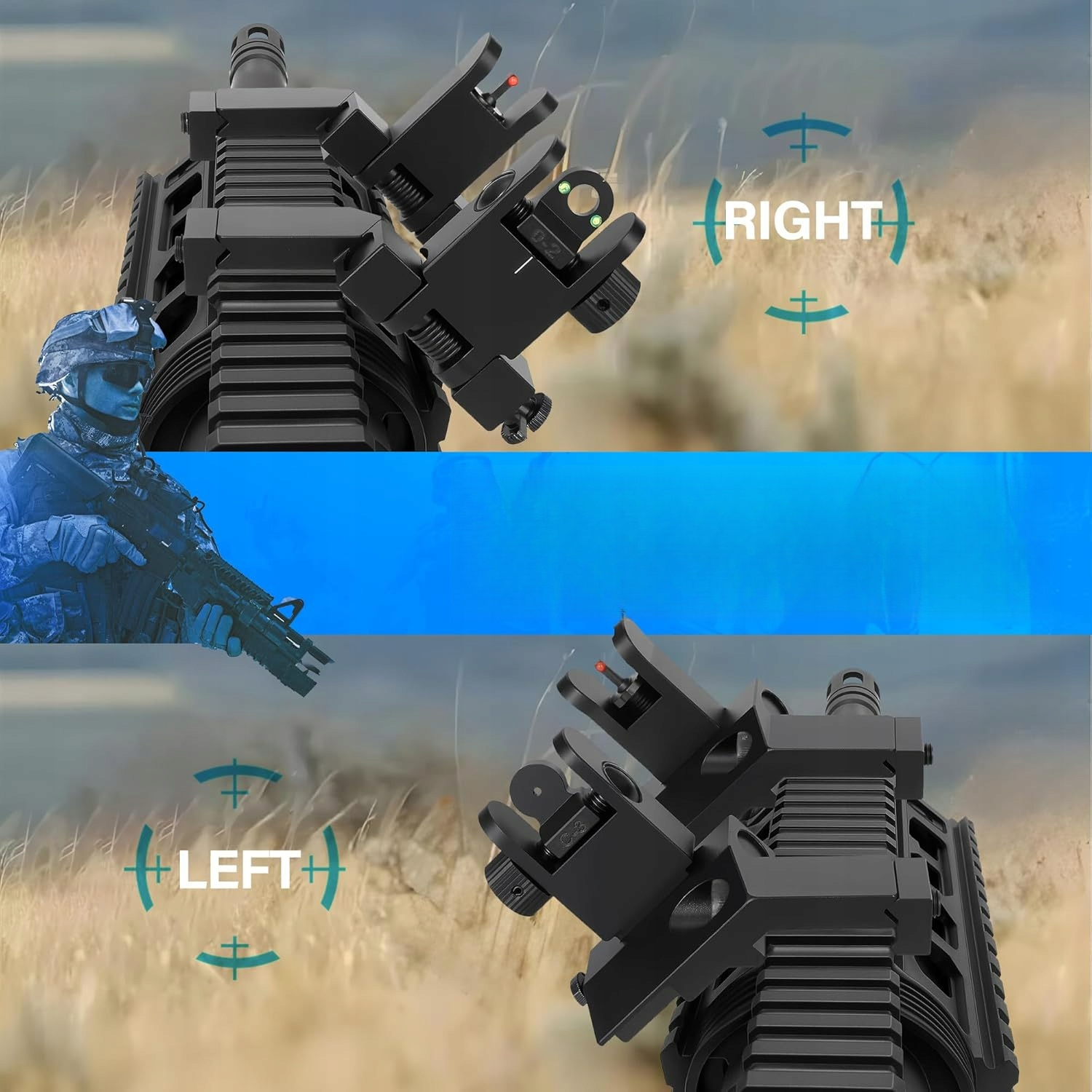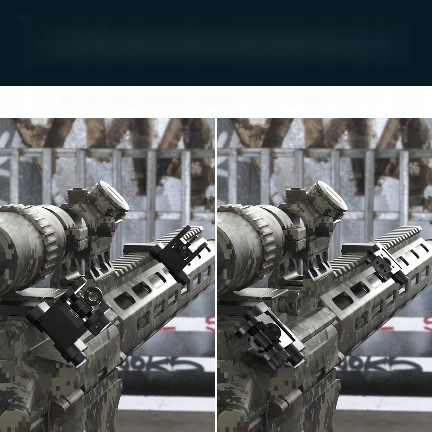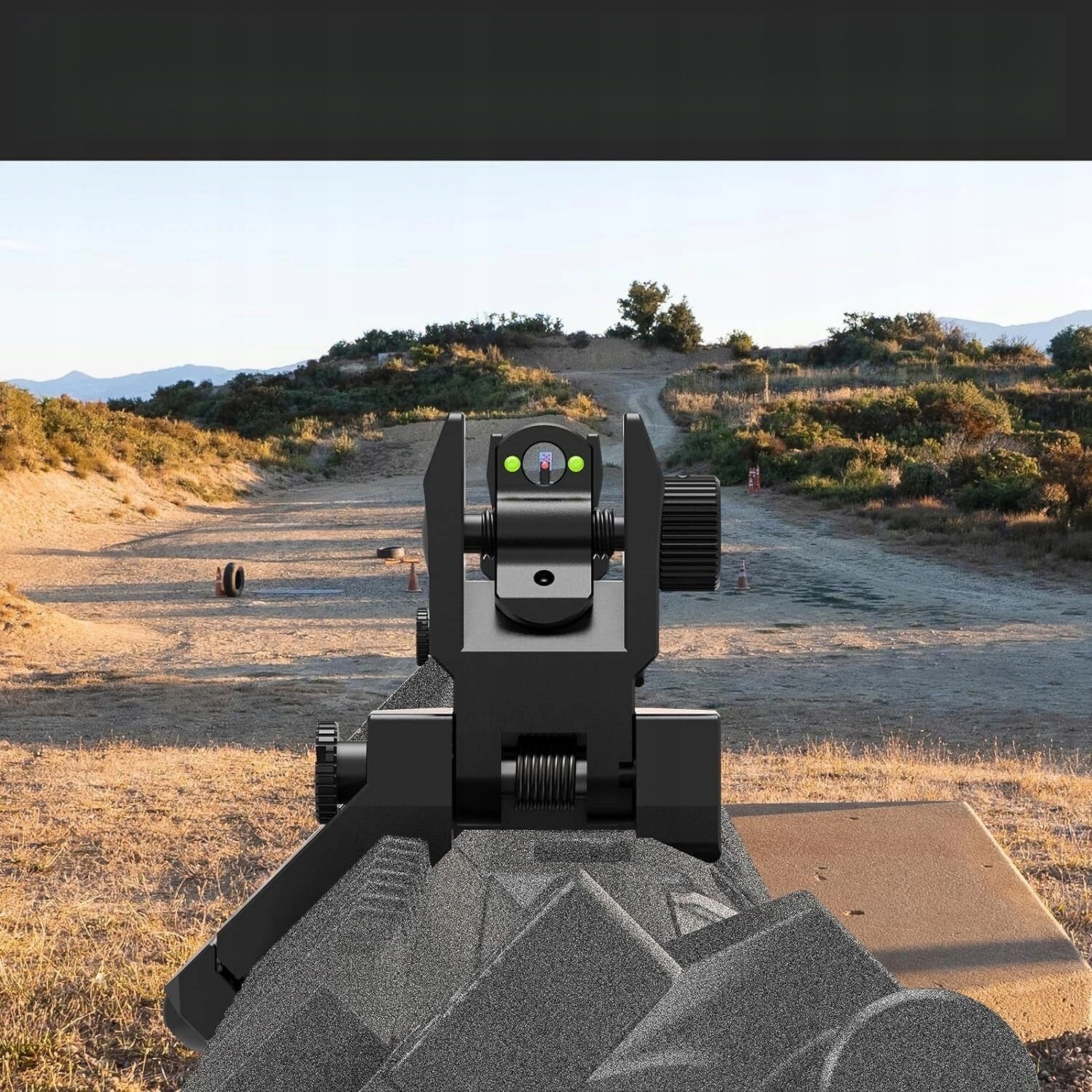 - Складна конструкція - як передня, так і задня складна конструкція прицілу. Точку прицілювання можна скласти/підняти вручну, натиснувши кнопку збоку, що може зробити її ефективнішою та зручнішою у використанні.