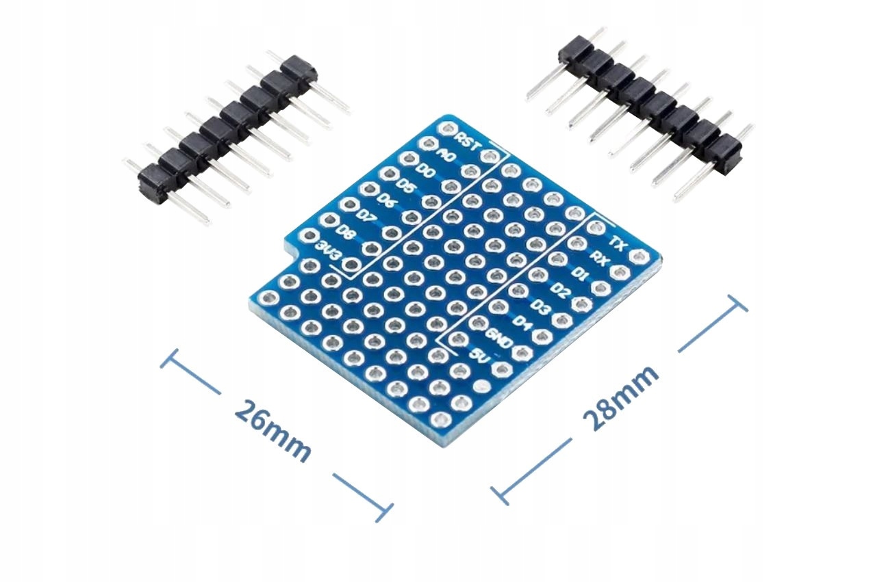 ✔️ Плата у формі щита, за своїми розмірами підходить до системD1 Mini WeMos.