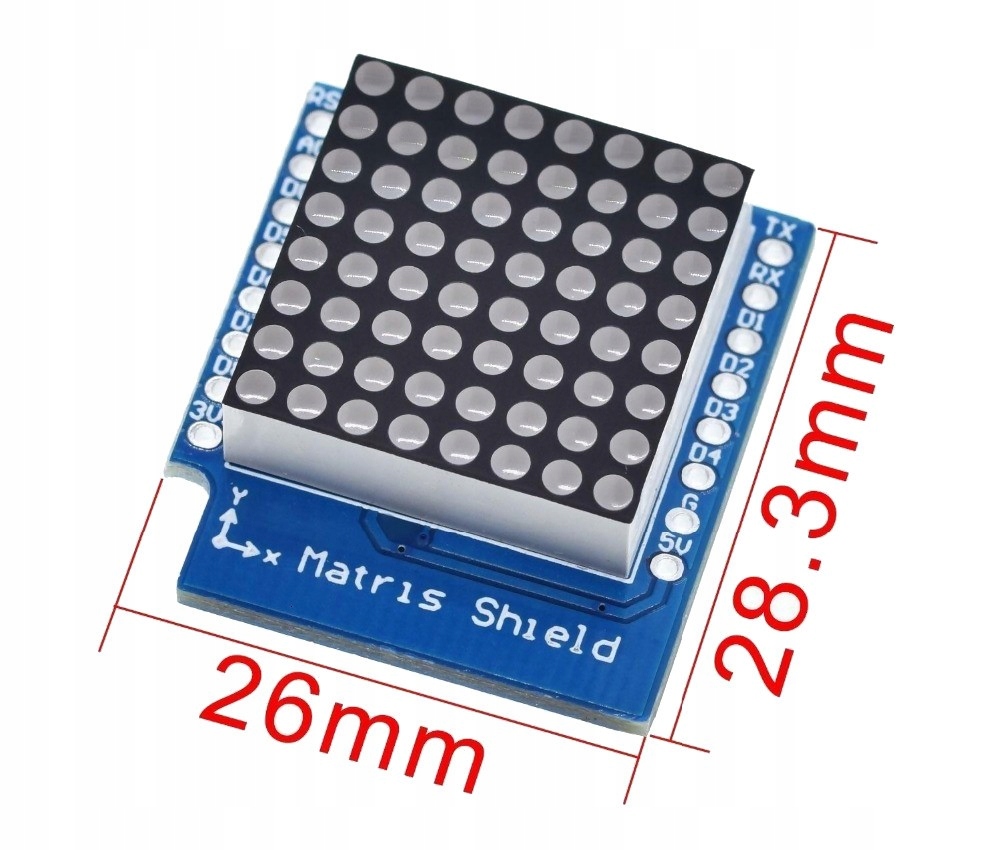 ✔️ Матричний драйвер 64 світлодіоди розташовані на матриця 8x8. Кожним світлодіодом можна керувати за допомогою восьмирівневої шкали яскравості.