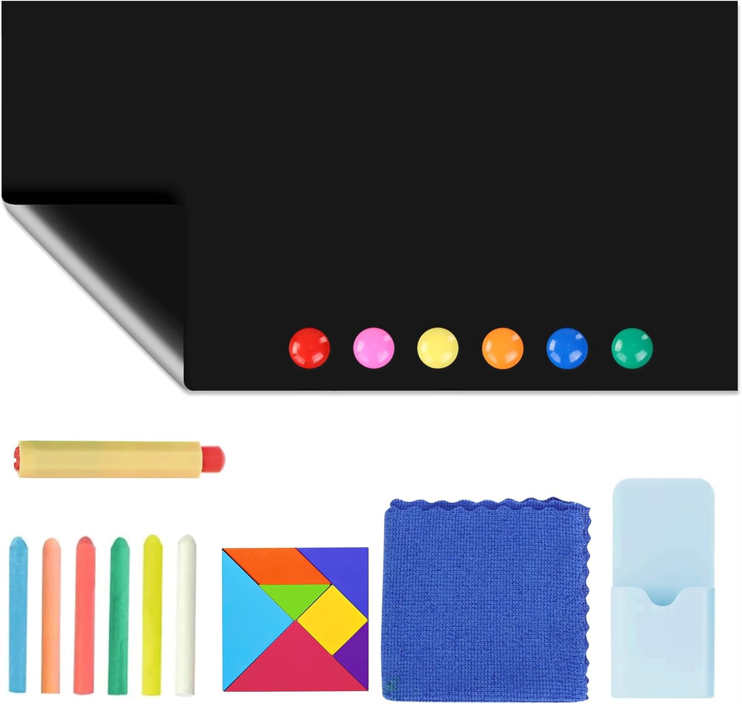 Набір включає барвисті крейду, магніти, тканину, крейдову ручку та набір танграму - все, що потрібно для негайного використання. Продукт ідеальний як подарунок для дітей, підтримуючи їх розвиток математичних та мовних навичок завдяки грі та навчанню.