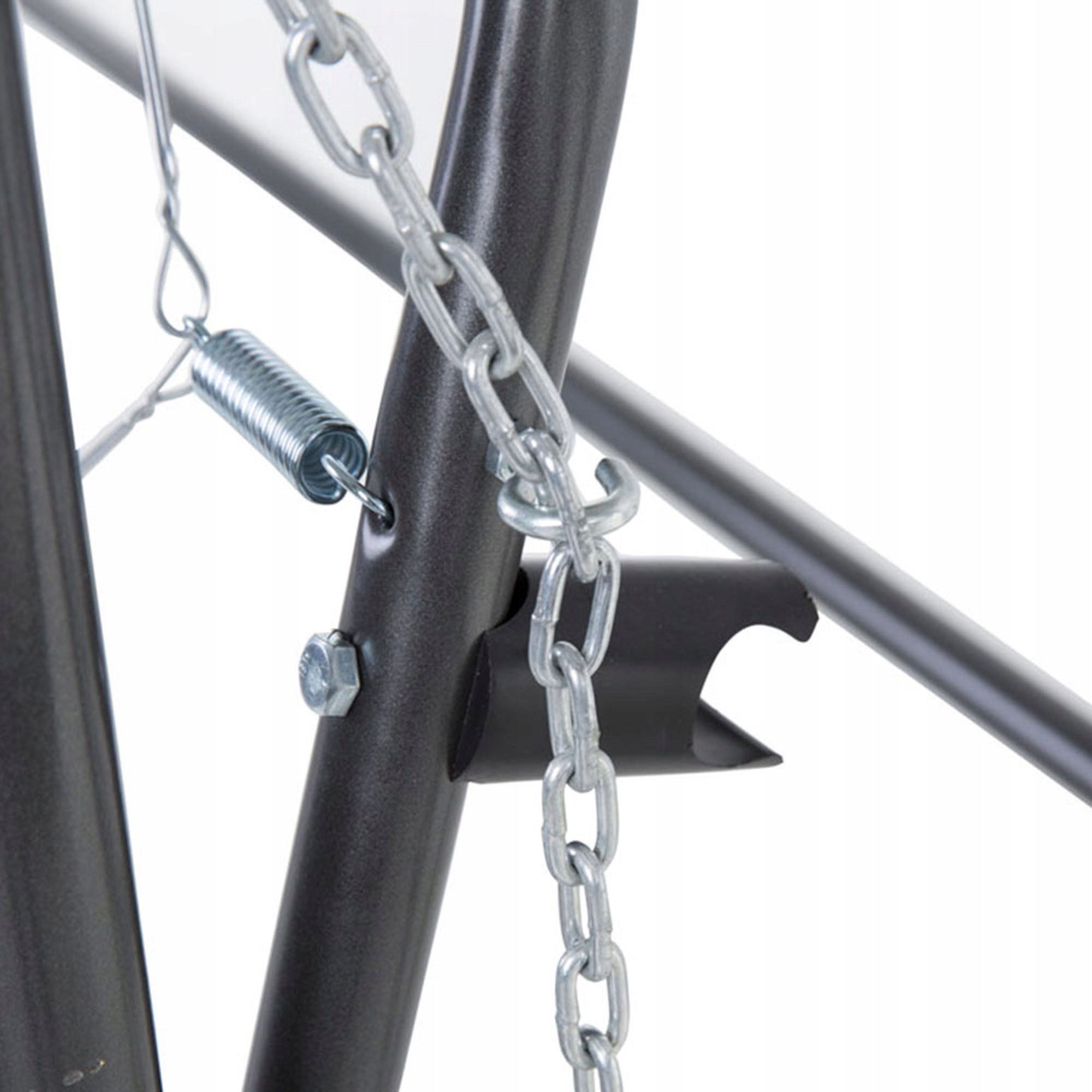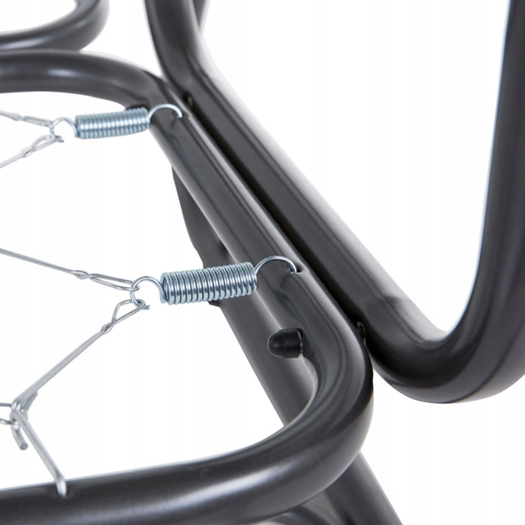 4-місна гойдалка Celebes Plus у дизайні A090-03LB з пружинним сидінням, яке можна скласти в положення лежачи. Рама з порошковим покриттям характеризується міцною конструкцією. Колір рами: антрацит. Каркас гойдалок має оригінальні отвори для кріплення тумб.