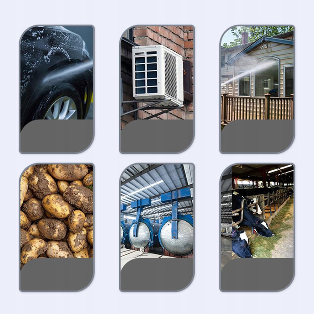 Портативна машина для чищення високого тиску має функцію захисту від температури, і миючий пістолет автоматично вимикається, коли перегрівається або перевантажується, усуваючи ризики безпеки . Його можна використовувати не тільки для чищення різних автомобілів, велосипедів, мотоциклів і т.д. Ви також можете мити балкони, вікна, зовнішні стіни, підлоги, огорожі, стіни будинку, меблі і т.д.