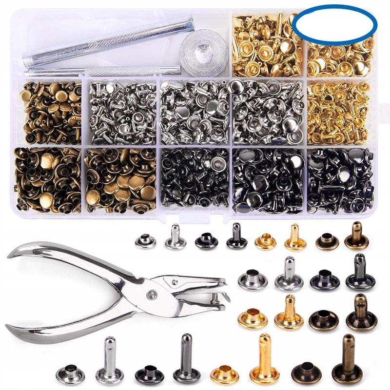 1. 480 Двосторонні заклепки (6*6 8*8 8*12 Золото, срібло, коричневий, колір пістолета 40 наборів Кожен 3 інструменти 1 Інструменти для удару 15 коробки для зберігання)