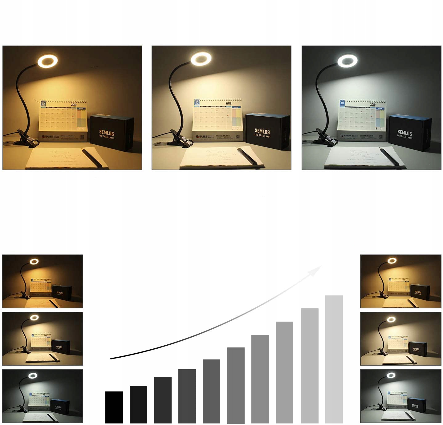 🔆 🔆lampa світлодіодний затискач має 3 легкі кольори: теплий, природний і прохолодний (кольорова температура: 3000-6500k). Кожен світлий колір має 10 рівнів яскравості (10%-100%). Лампа для читання, оснащена одноразовим перемикачем із простими кнопками функції, тому ви можете легко перемикатися між 30 режимами освітлення, що відповідають усім вашим потребам, щоб отримати найбільш підходяще світло для читання, роботи, сну тощо