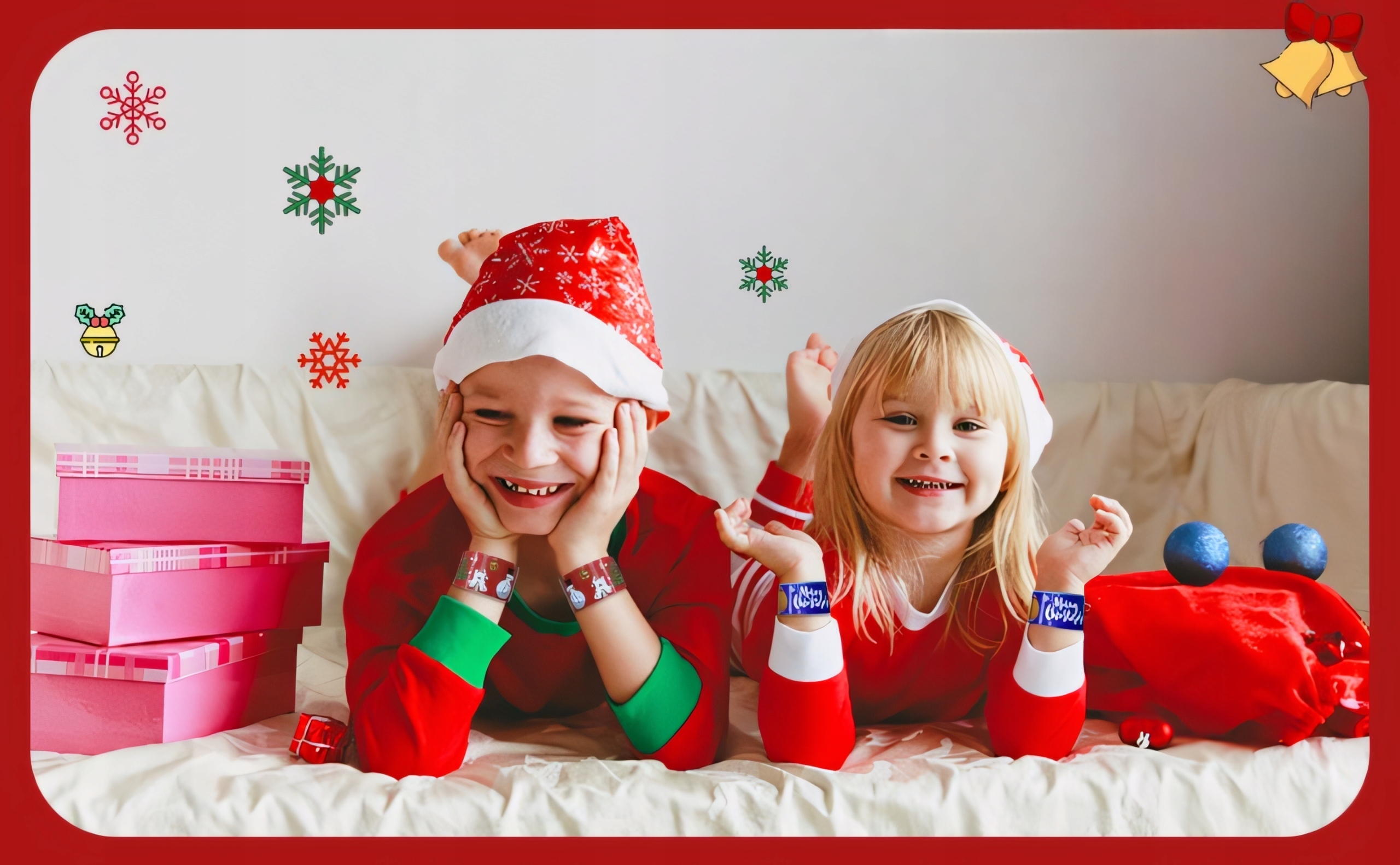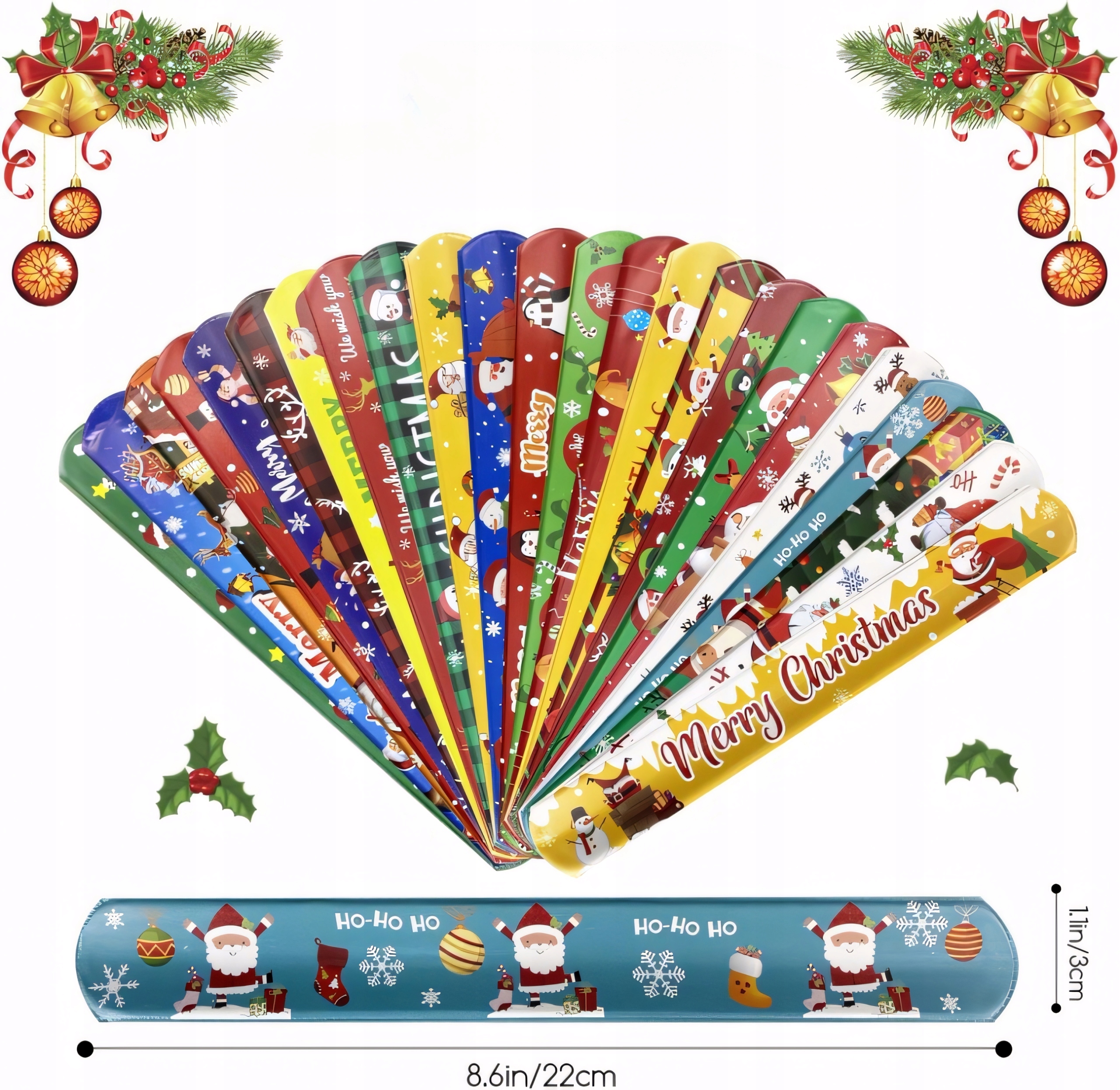 Набір 48 Різдвяні власні групи -ідеальний різдвяний гаджет! Групи мають 24 унікальні візерунки , включаючи mikołaj, оленя, сніговик, пряник, цукрові палички та зоряні сніжинки . Один легкий удар достатньо, і смуга негайно оточить зап'ястя ! Зроблені з безпечних та довговічних матеріалів , вони є чудовим вибором для подарунків, подарунків та різдвяних прикрас.