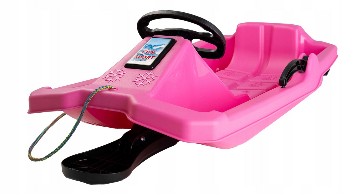 Зручні сани для слайда по снігу. Сани мають обтічну форму та зручні спинки.
