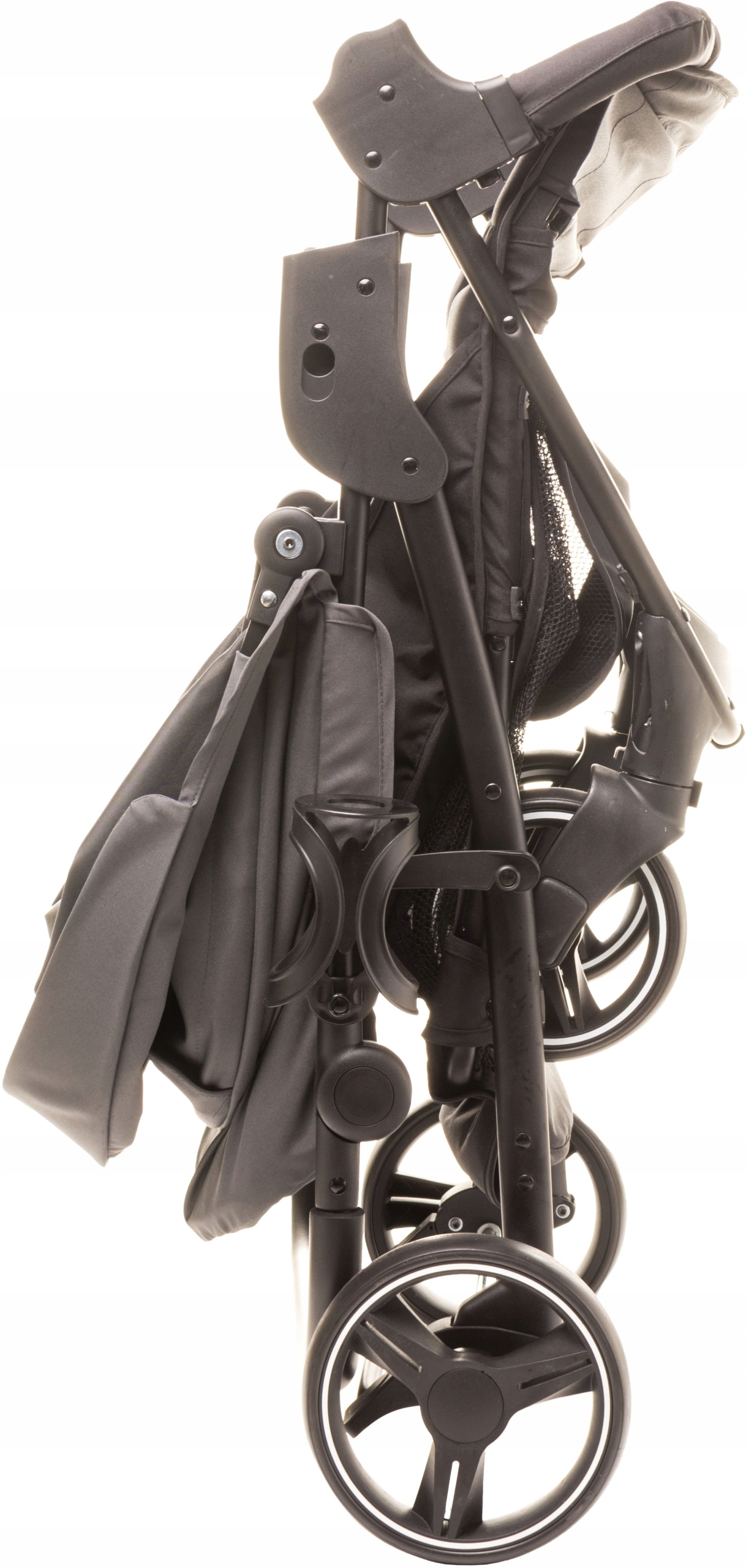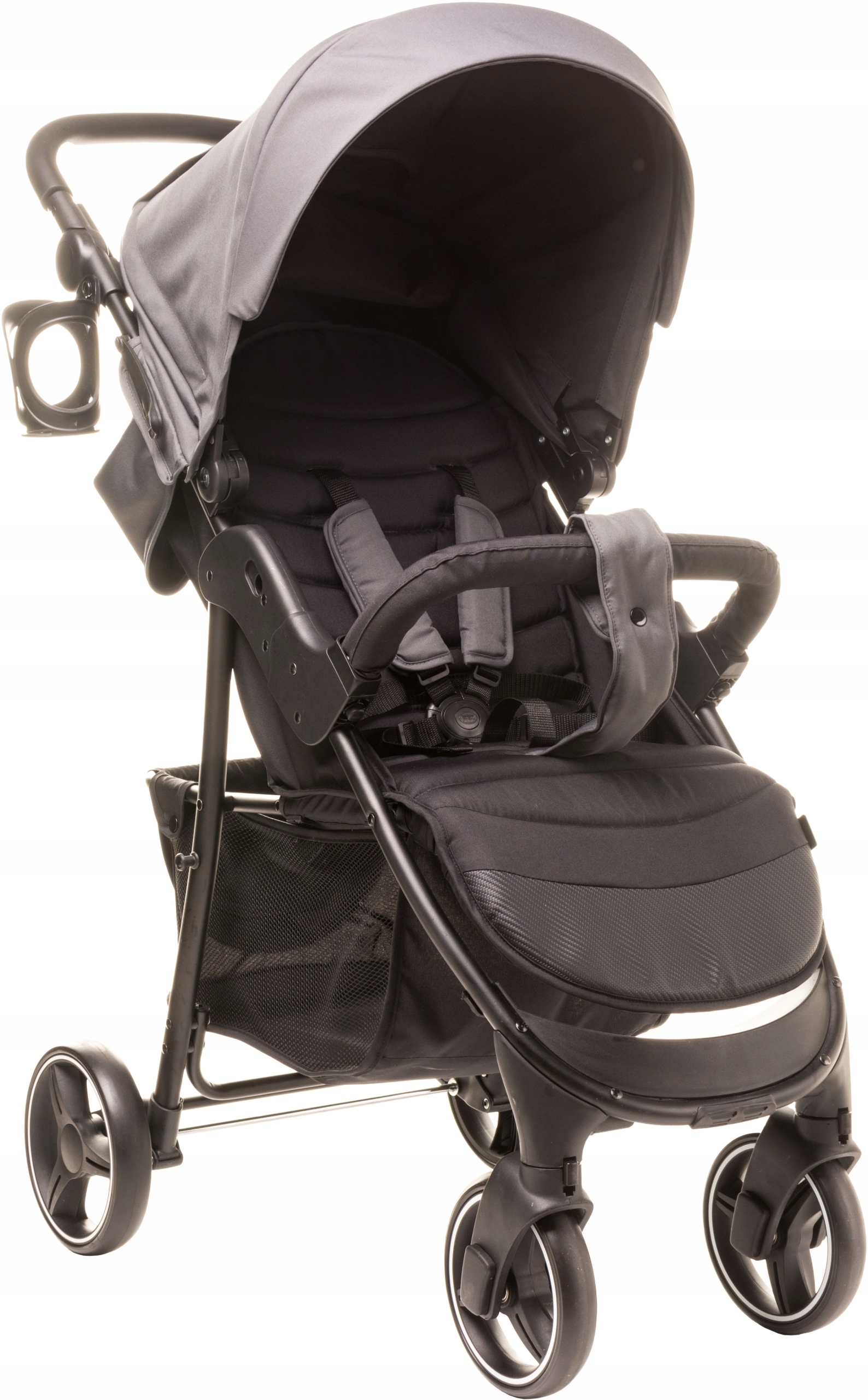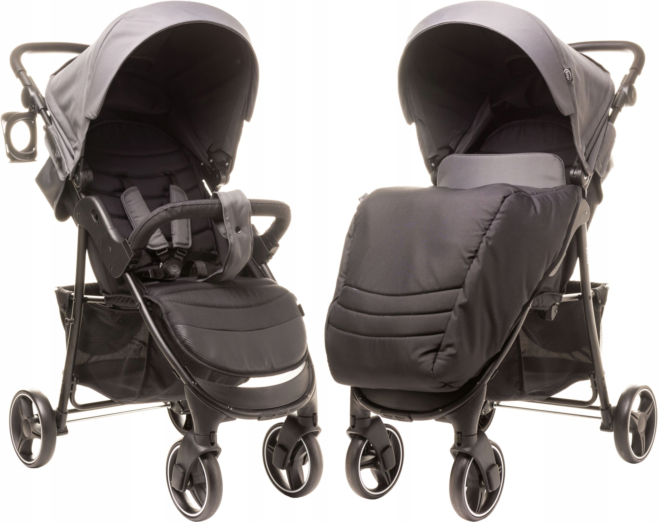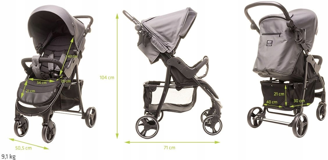 Великі задні колеса чудові з нерівномірністю, а спереду оснащені поворотним блоком, який, безумовно, полегшує підтримку доріжки. 5-бальні ремені оснащені обкладинками, забезпечуючи безпеку, забезпечують комфорт подорожей. Піднята пов'язка на голову, оброблена м'якою, пінопластовою начинкою, є додатковим захистом від несподіваного падіння. Візок має розширену кабінку, а на задніх ділянках є практичний кишеня на блискавці. Крім того, у верхній частині кабінки є прозорий вікно, завдяки якому ви можете побачити свою дитину. У швидкого є власник чашки та утеплена кришка ніг, що є додатковим захистом від дощу та вітру. Замикаючий кошик підійде як необхідні аксесуари, так і незначні покупки.