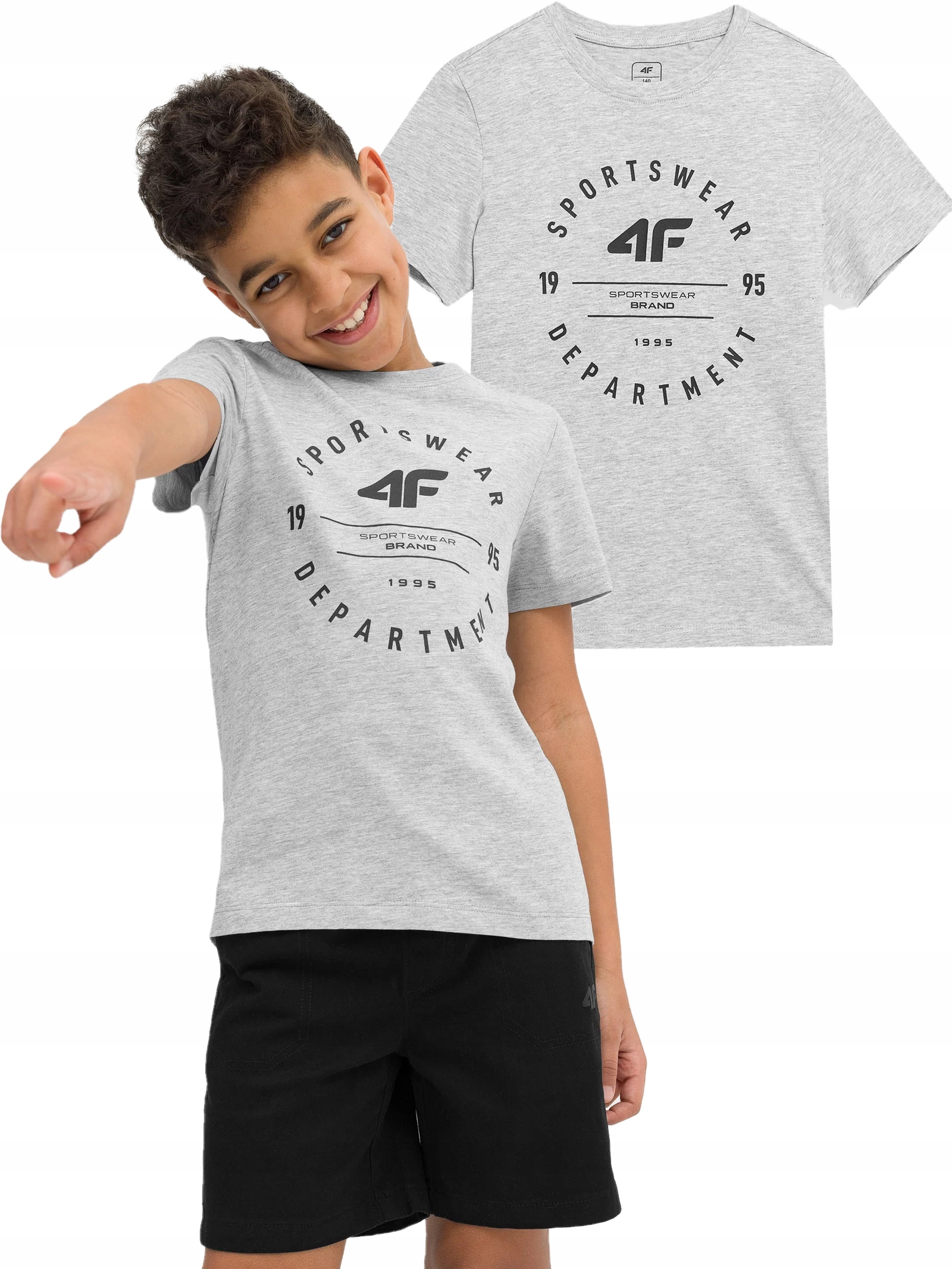4F ДИТЯЧА ФУТБОЛКА З КОРОТКИМИ РУКАВАМИ СІРА R-164