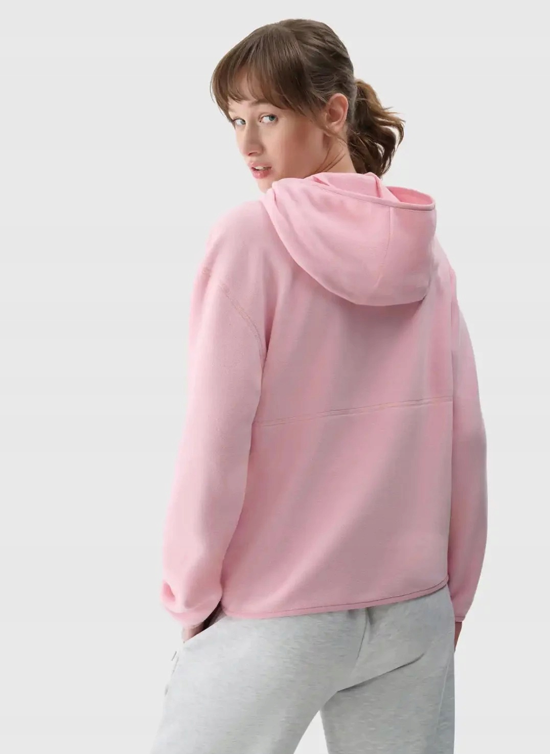 флісольна толстовка з капотом, що не є без тривалої, без регулювання. Манжники закінчилися гнучким обрізанням. З боків є 2 відкриті кишені. Прикріплений до основного замку.