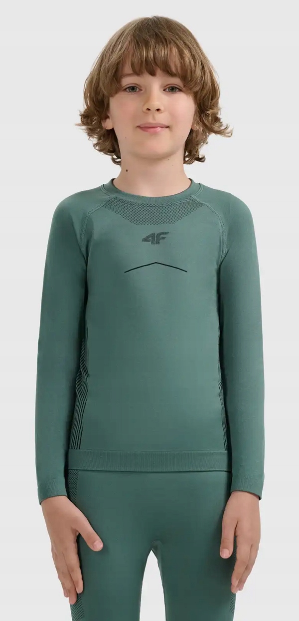 Дитяча термобілизна з еластичної технічної тканини за технологією 4FSkinідеально прилягає до тіла, забезпечуючи комфорт і максимальну свободу рухів. Круглий виріз. Еластичний пояс забезпечує ідеальну посадку. Рукава реглан не сковують рухів.