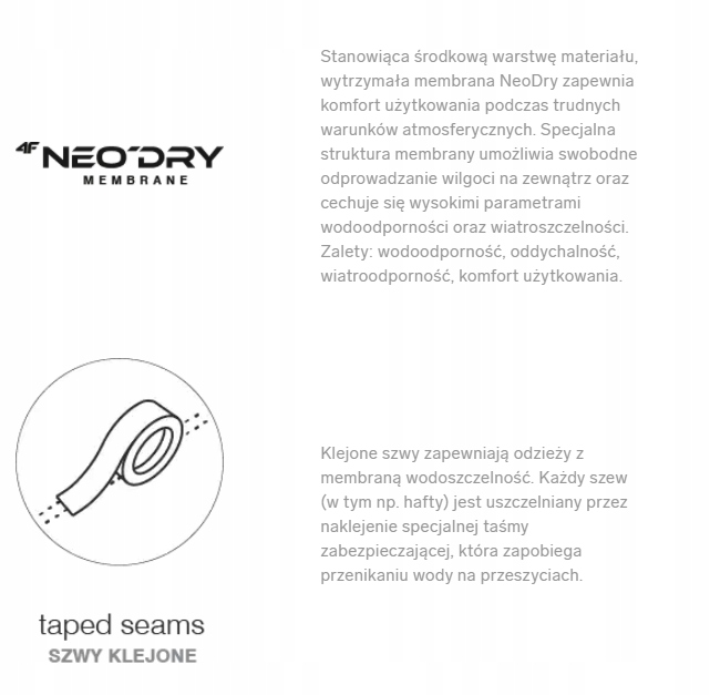 - Мембрана NeoDry 10 000 забезпечує хороший захист від проникнення холоду та вологи,