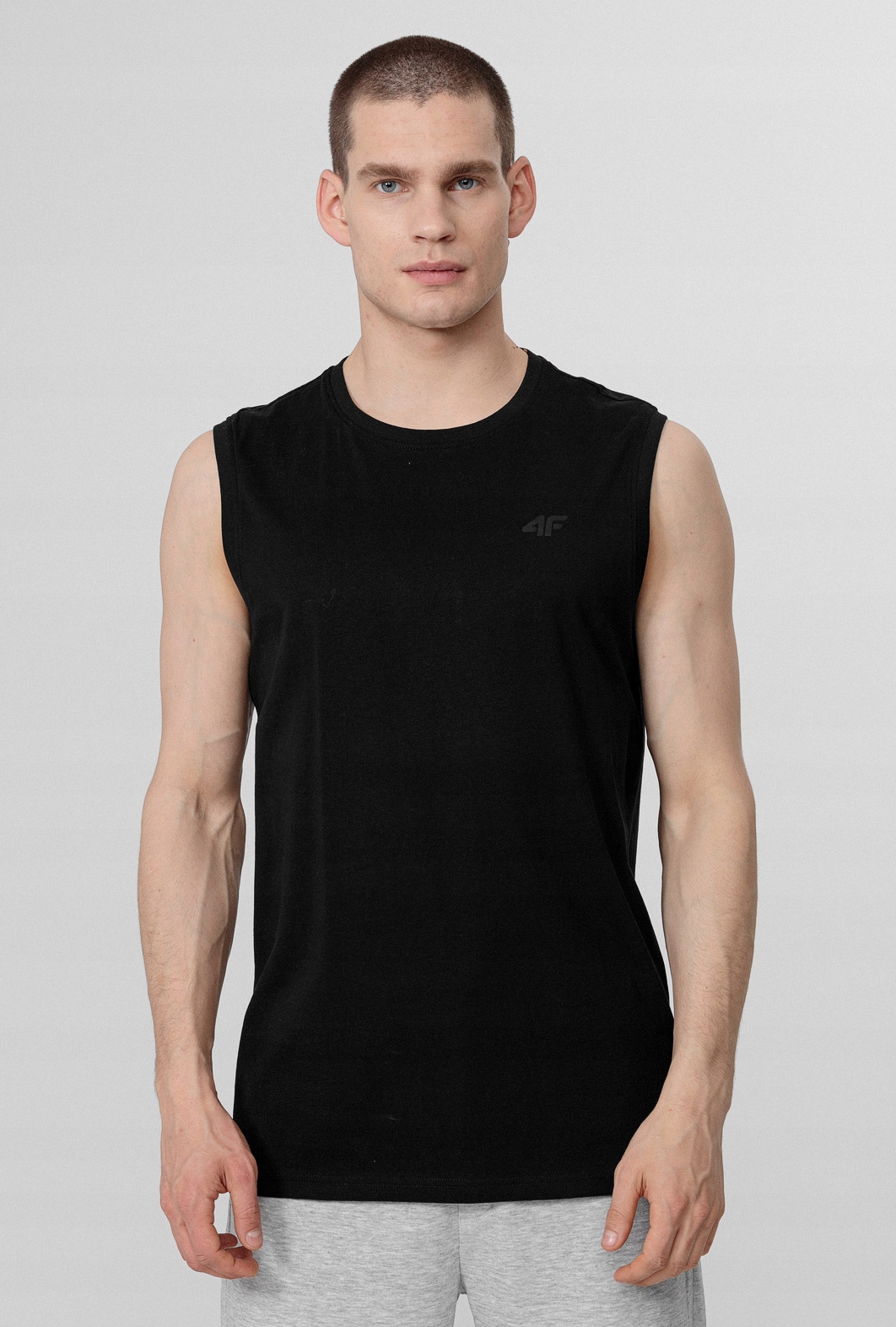 Чоловіча футболка без рукавів 4F. Дуже якісний бавовняний матеріал і висока якість виготовлення гарантують комфорт і тривале використання. Звичайний крій. Футболка має маленький логотип на грудях.
