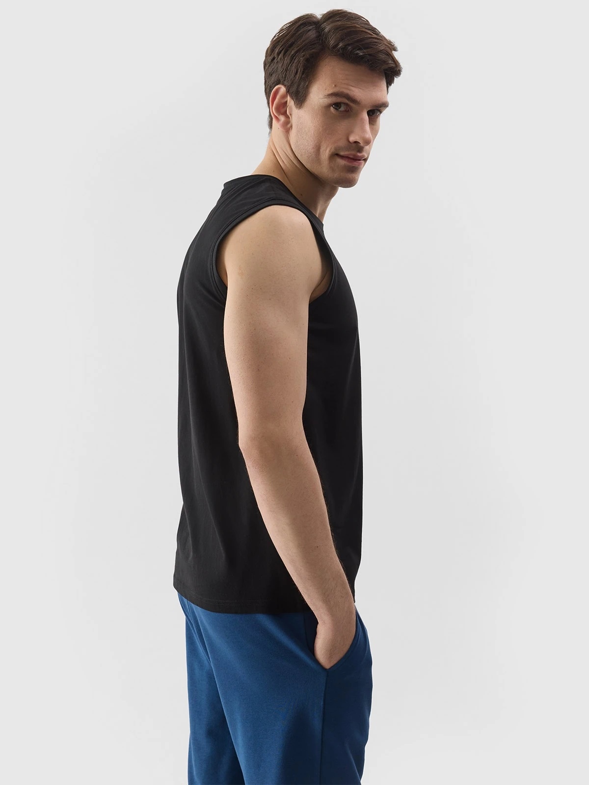 чоловіча без рукава -сорочки відомого бренду 4F ідеально підходить як елемент як випадкових, так і спортивних стилів щодня. 4 Одиночна трикотажна плетіння з односторонньою гладкою поверхнею робить t -сорочку гнучкою та зручною для носіння.