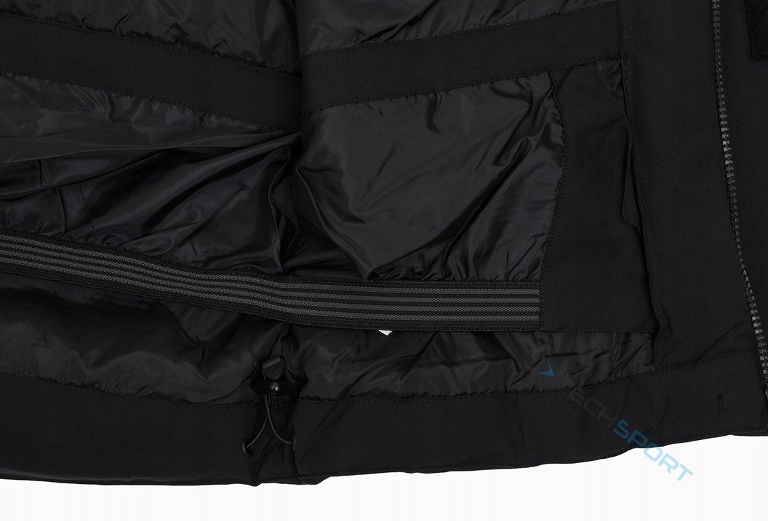 Куртка має внутрішній нековзкий пояс для снігу, який застібається на застібки для кращої посадки та захисту від холоду. Низ куртки додатково регулюється еластичними манжетами для стопорів: