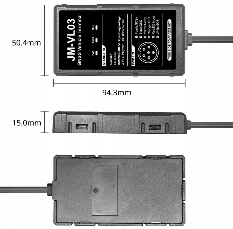 Робоча напруга локатора становить 9-90 В дозволяє підключати низку транспортних засобів, від електромобілів (е-велосипед, електросамокат) до транспортних засобів з внутрішнім двигуном (легковий автомобіль, фургон, вантажівка тощо).