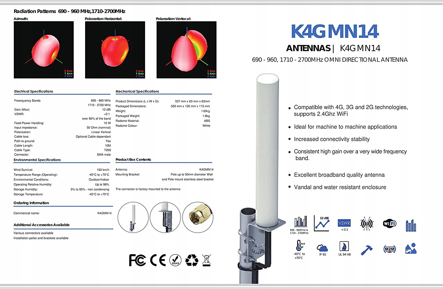 - Посилення: 7-12 dBi 4 g антена