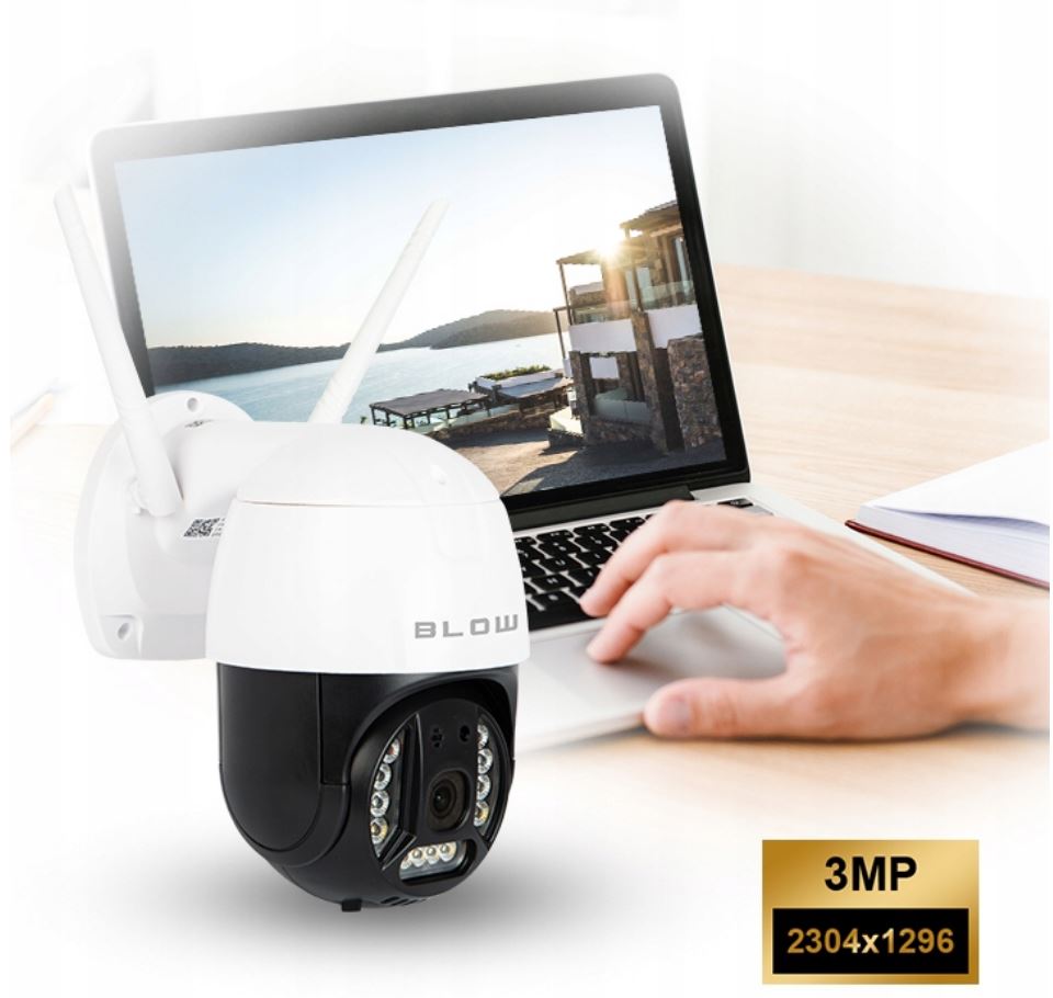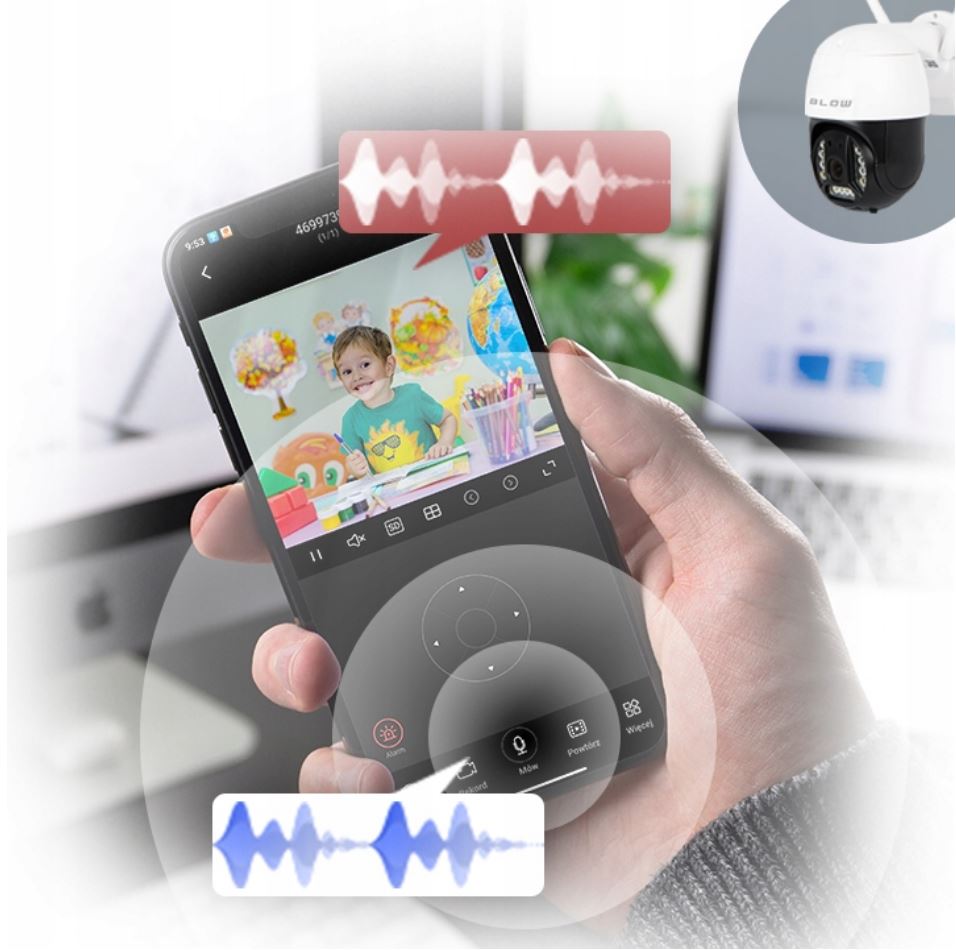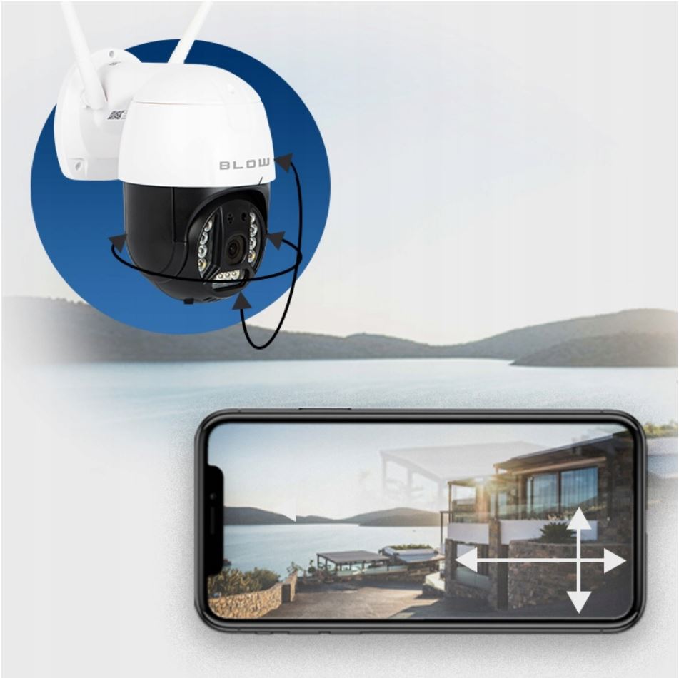 комфортний та ефективний моніторинг? Тільки з камерою Blow! Записане зображення настільки детальне, що дозволяє розпізнавати навіть невеликі деталі. Великий кут обертання 350 градусів горизонтально і 90 градусів вертикально, а кут огляду 80 градусів дозволяє ефективно спостерігати за областю. Крім того, удар був оснащений цифровим Zoom x 4