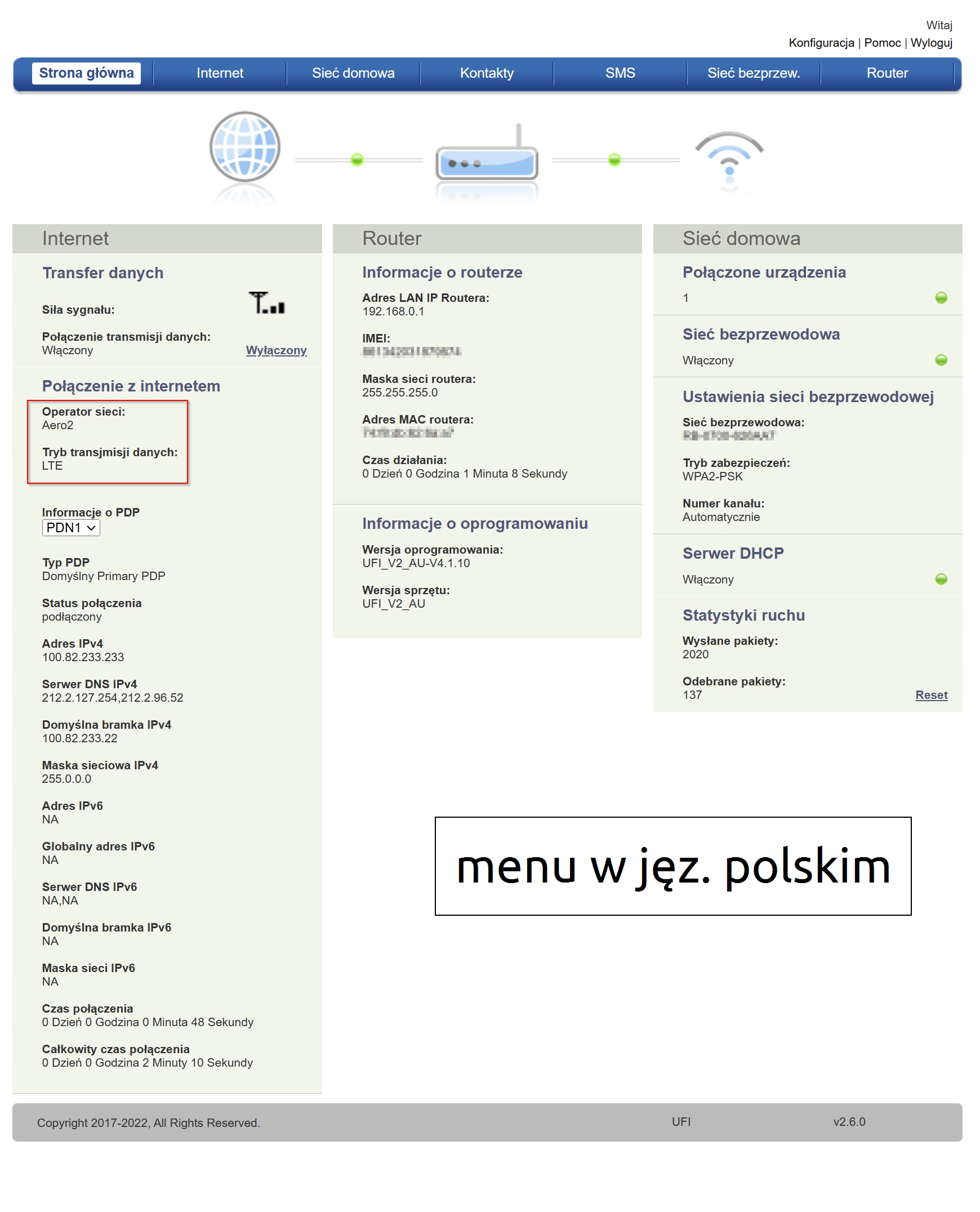 Рутер має меню польською мовою. Він чіткий і чуйний.