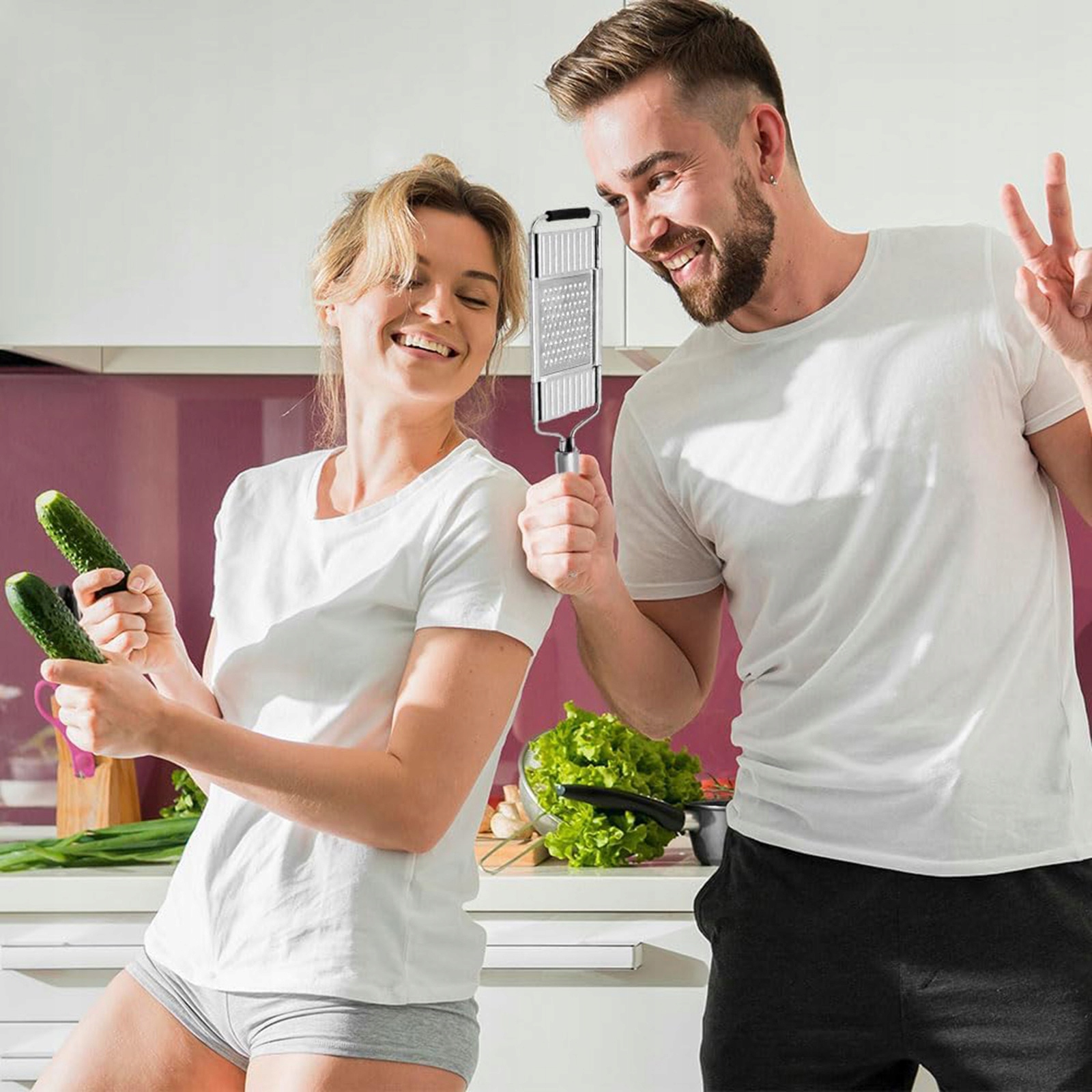- 4 Регульовані леза адаптуються до всіх ваших потреб. Багатофункціональний овочевий шлюз ідеально нарізатиме і нарізатиме шматочки тертого сиру, огірків, цибулі, кабачків, моркви, часнику, помідорів, картоплі, капусти, імбиру, лимона, апельсина, яблук тощо. Ефективна і довговічна, багатофункціональна сирна терка - це справжнє необхідне на кухні, яку часто забувають, але при необхідності це стає очевидним.