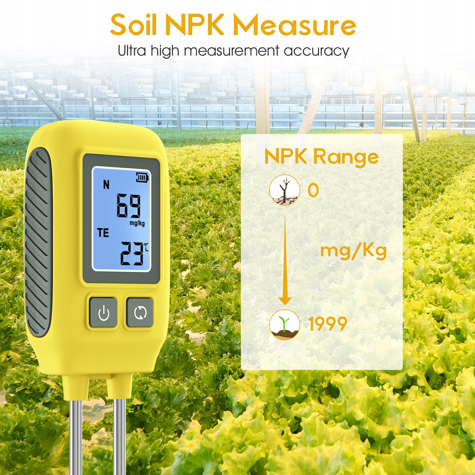 3. 【Надзвичайно точні показання】: забезпечує надвисоку точність вимірювання N/P/K елементів із діапазоном вимірювання температури 0 ℃ -60 ℃ (32 ℉ -140 ℉) і точністю ±1% і значеннями N/P/K від 0 до 1999 мг/кг, забезпечуючи надійні та точні дані для вашого на основі саду.
