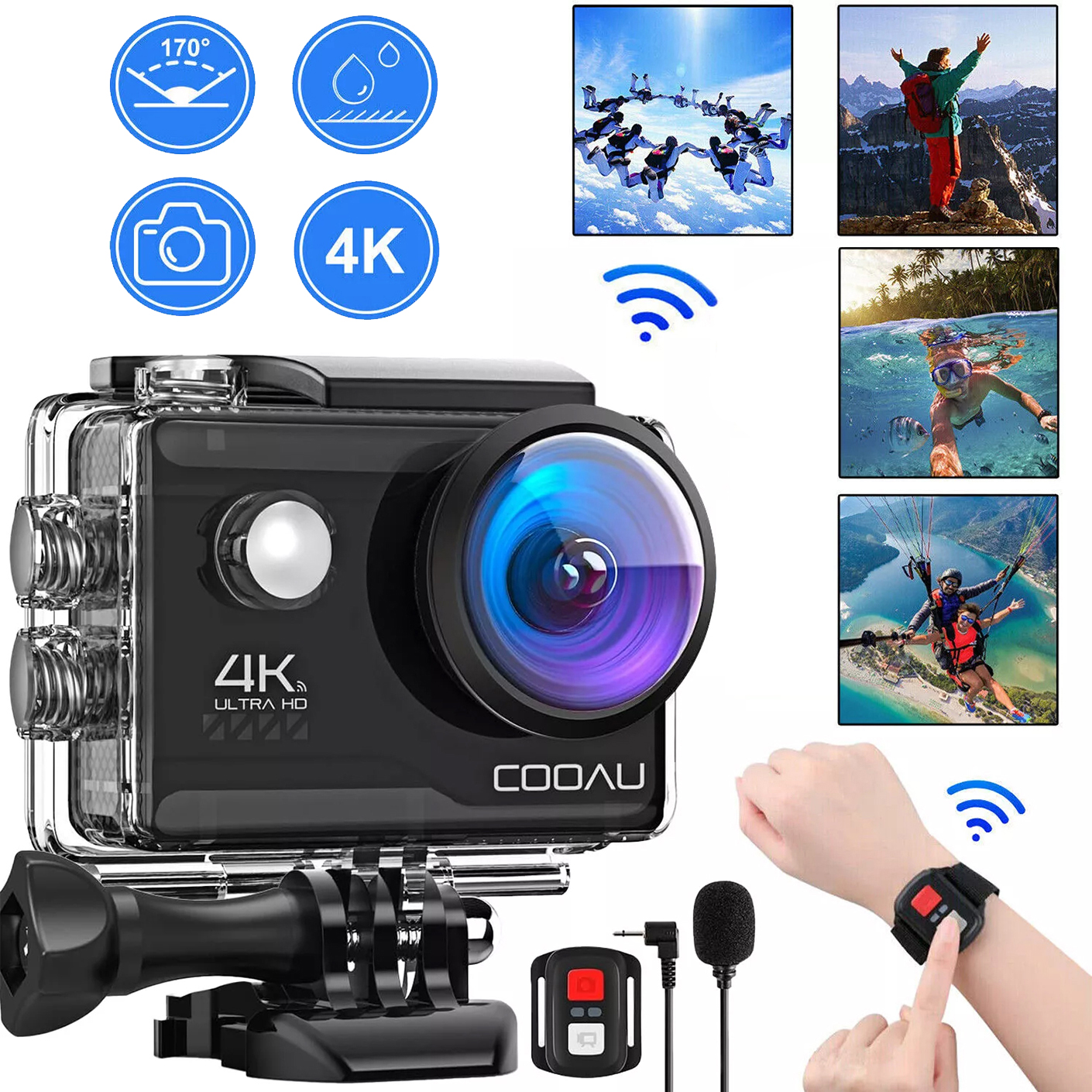 Професійна спортивна камера COOAU 4K Ultra HD інтегрує останній чіп для запису відеозаписів 4K/30 кадрів в секунду та фотографування 20 Мп , щоб захопити та поділитися своїм світом у відмінному роздільній здатності. шириною 170 ° Кут дозволяє спортивній камері записувати більше під час зйомки пейзажів чи важливих моментів.