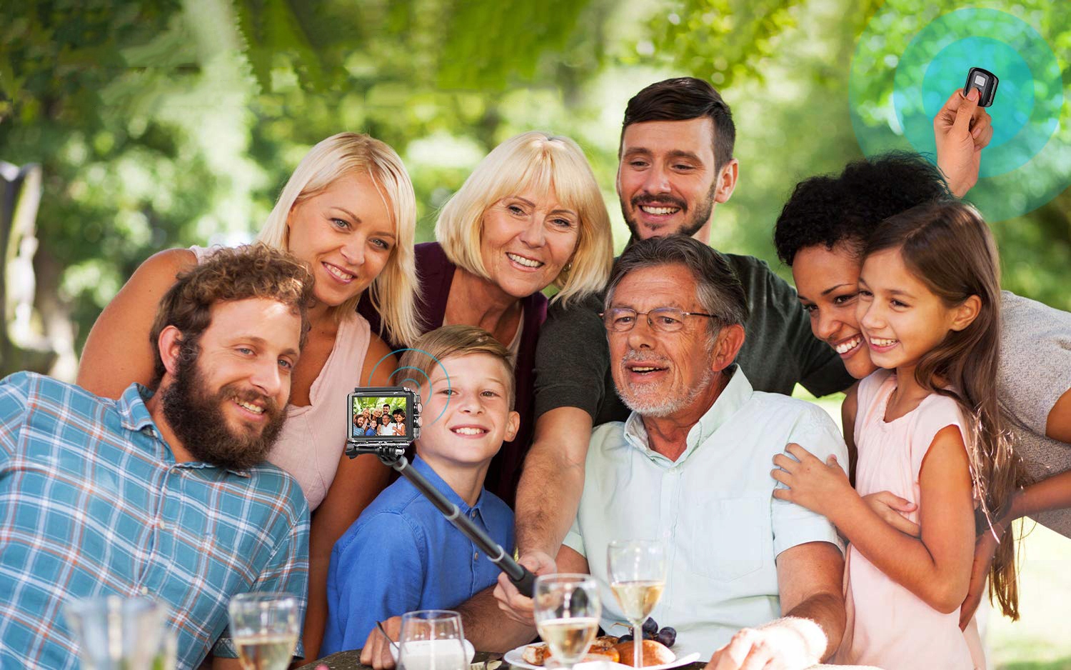 Натисніть червону кнопку, щоб зробити фотографію та сіру кнопку для запису відео. Ідеально, якщо ви не хочете використовувати Wi-Fi. Відстань дистанційного керування до 10 метрів. Функція "R" дистанційного керування активна.