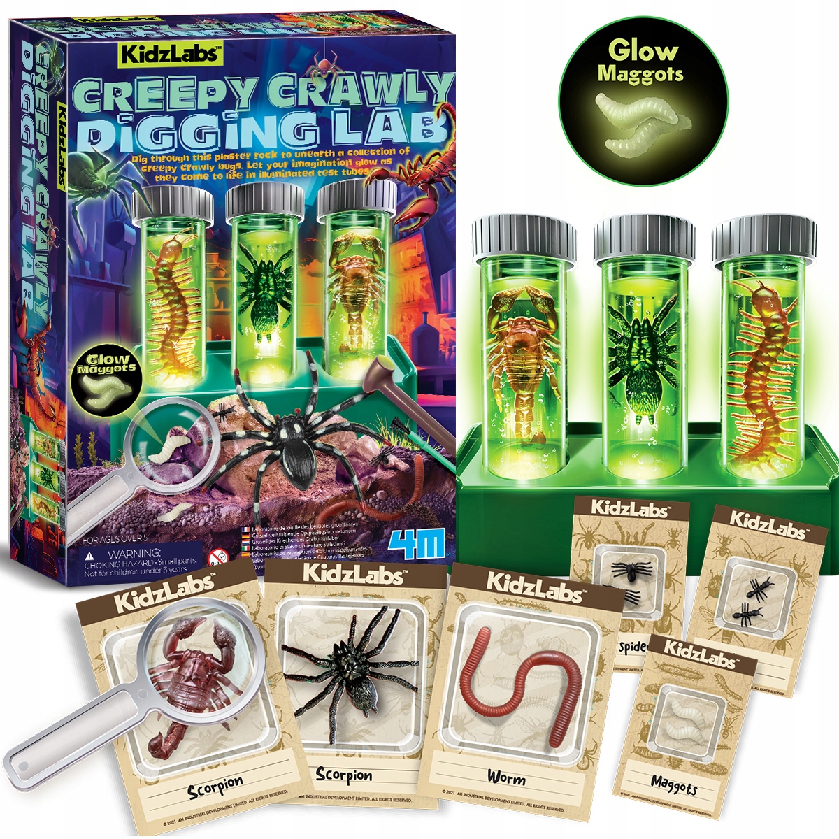 Викопуйте скарби й побачте, як вони світяться в темряві! Ваша дитина зіграє роль археолога, який виявляє черв'яків, захованих у гіпсовій брилі. Це не тільки розкопки - після випуску всіх 9 моделей (7 черв'яків + 2 флуоресцентні личинки) починається другий етап веселощів: вони світяться в темряві! Це поєднання наукової експедиції з ефектом «вау», який приносить задоволення юним дослідникам.