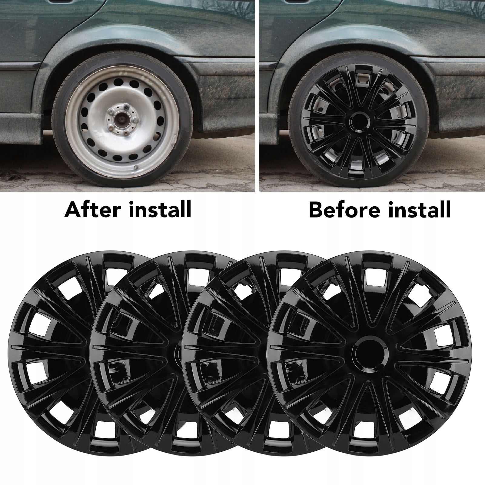 3. Спортивний вигляд: Обкладинка коліс Hubcap має спортивний та модний вигляд, який додає стильну та привабливе оздоблення коліс, надаючи вашому транспортному засобу персоналізований штрих.