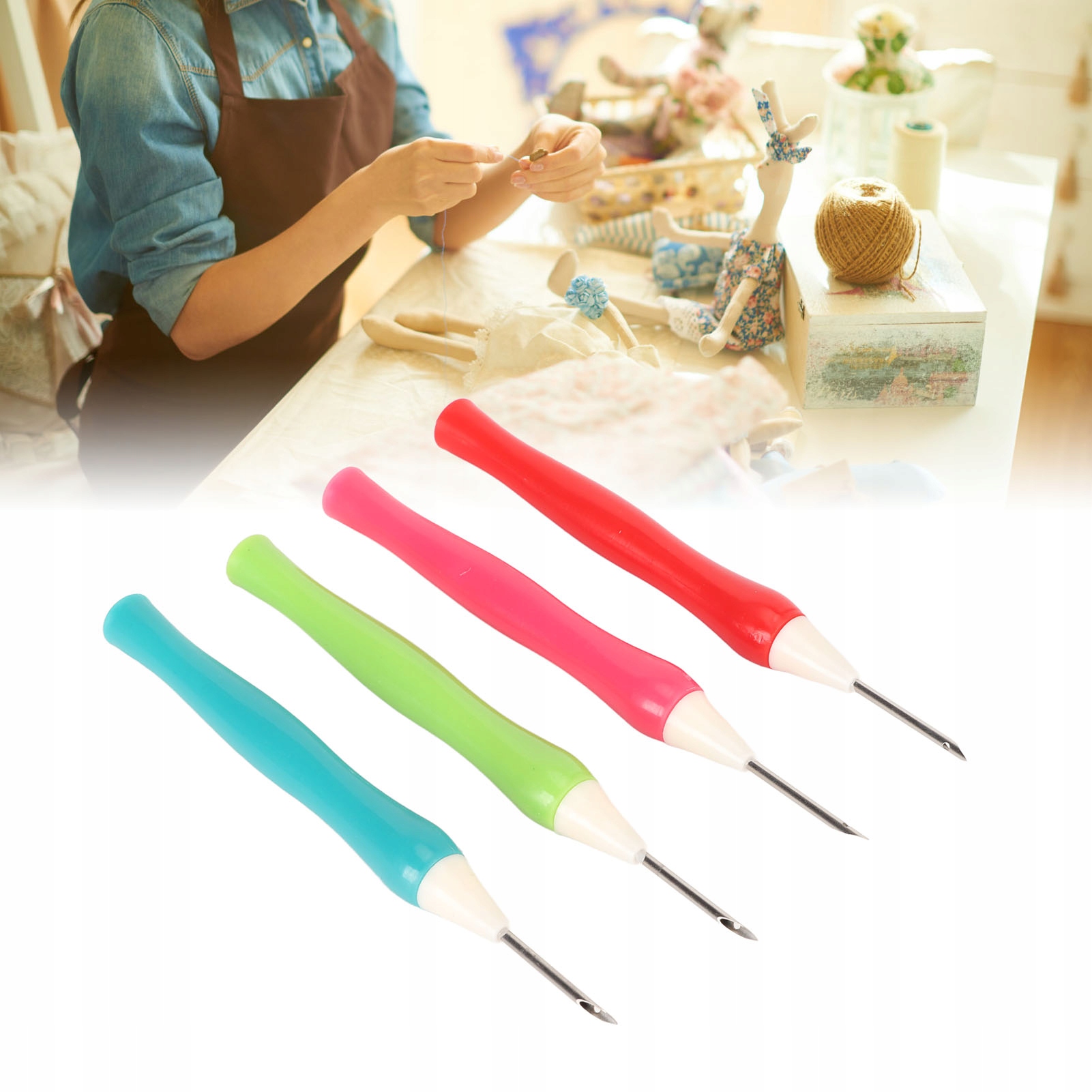 4. Легко вчитися: підключіть пряжу від перфоратової голки до кінчика ручки, а потім прокиньте пряжу через отвір. Навіть початківці можуть почати швидко