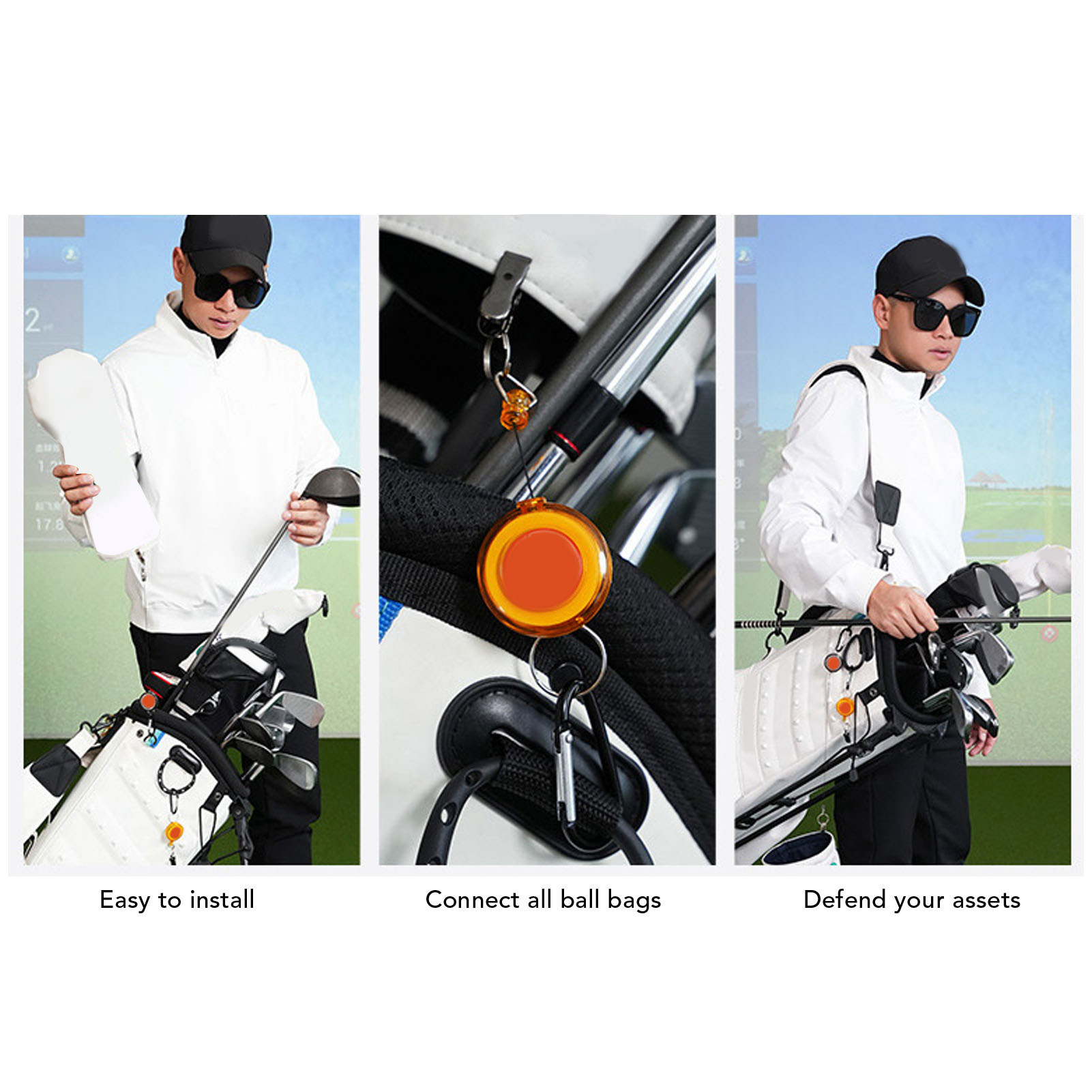 2. Легка установка: призначена для довговічності та атмосфери, цей пояс може бути швидко та безпечно прикріплений до мішків для гольфу, обкладинки клубу, рушників та рукавичок, що робить його спробою доповнення до конфігурації гольфу. 4